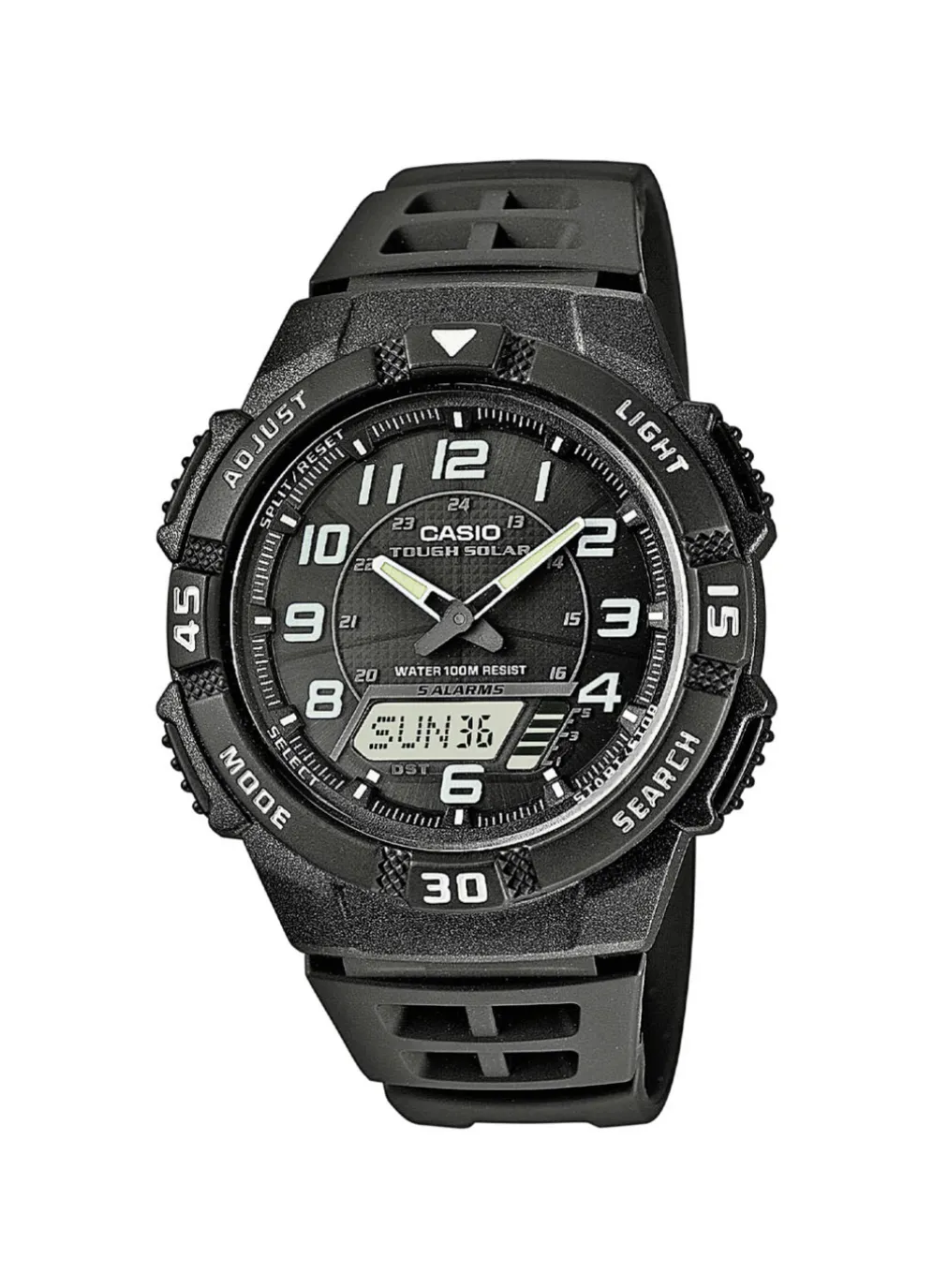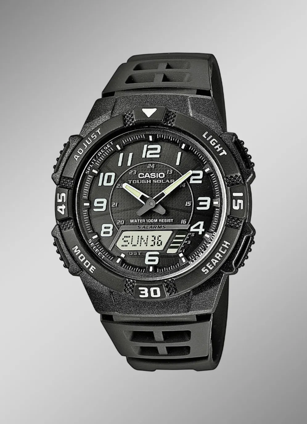 - 5 Alarme, Beleuchtung, Kalender, Stoppuhr, Timer, 12/24h-Anzeige, Weltzeitfunktion
