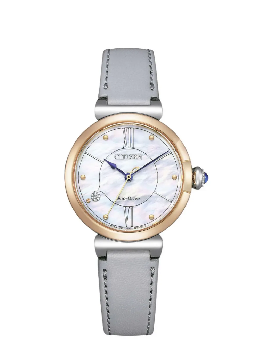 Die Citizen Damenuhr hat ein Edelstahlgehäuse in rosévergoldet, das einen Hauch von Glamour verleiht. Das Kristallglas schützt das Zifferblatt vor Kratzern und sorgt für eine klare Sicht. Das Lederband mit Dornschliesse ist angenehm zu tragen und passt sich Ihrem Handgelenk an.