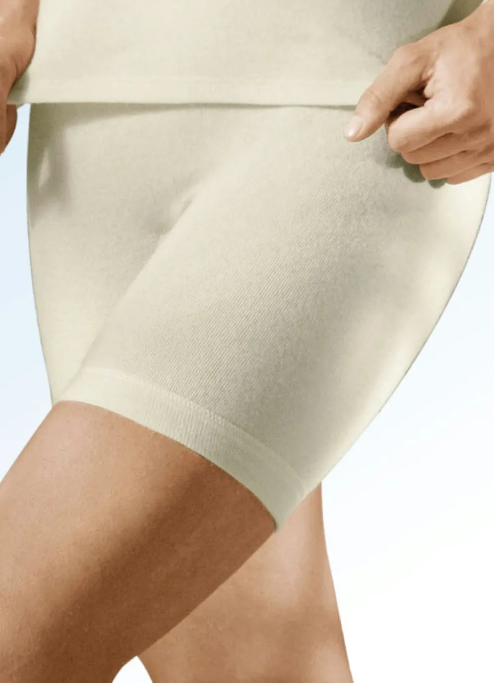 Kuscheliger, wollweißer Schlüpfer mit langem Bein von „Con-ta“, mit hohem Tragekomfort sowie auswechselbarem Gummizug im Bund.