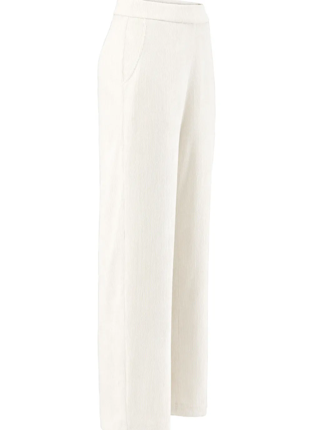 Cordhose von laurakent mit modisch weitem Beinverlauf: komfortable Schlupfform, glatt anliegend dank des innenliegenden, unsichtbaren Rundum-Dehnbundes sowie Seitentaschen. Innenbeinlänge ca. 78 cm, Fußweite ab 50 cm.