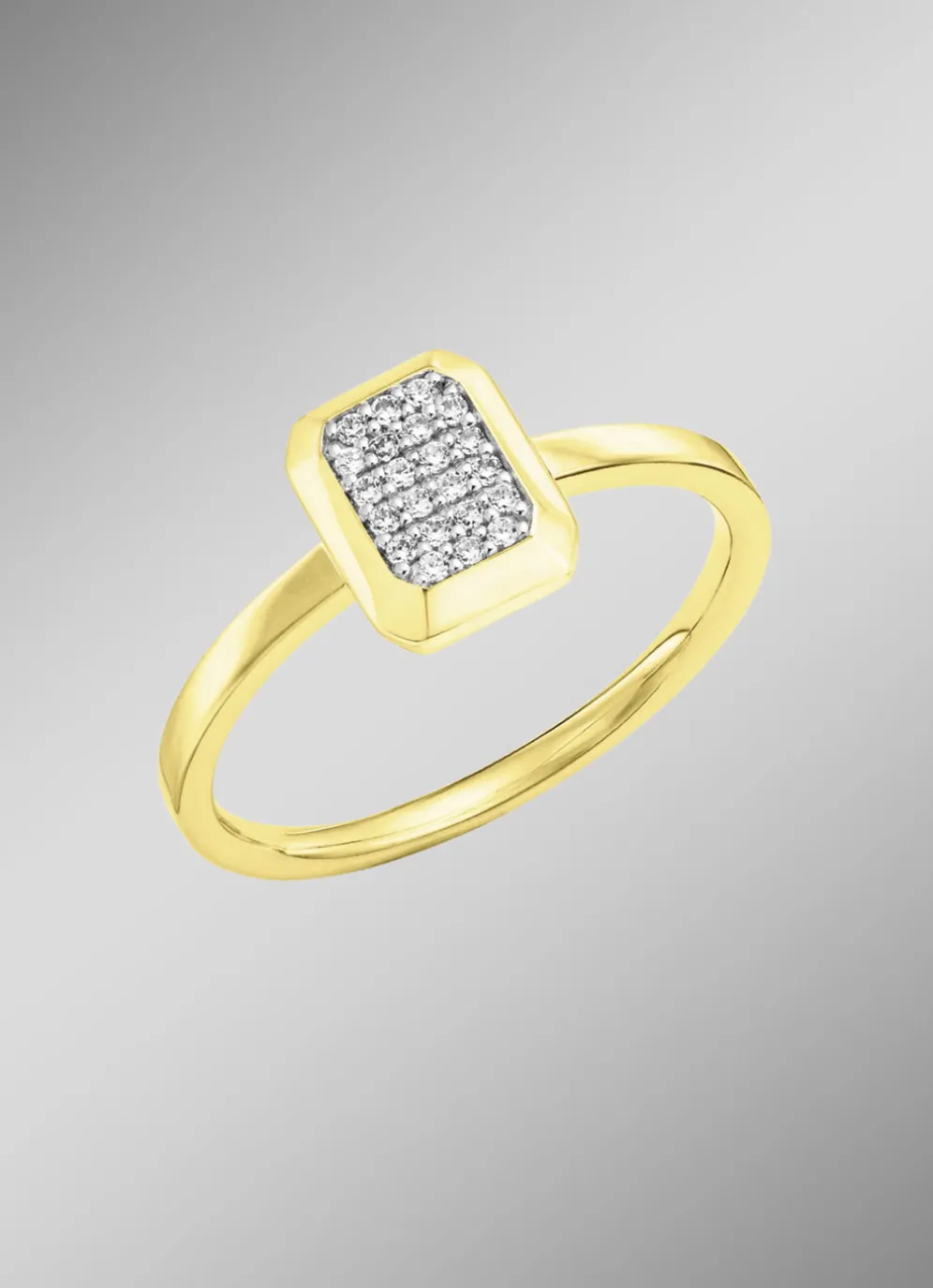 Verleihen Sie Ihrem Look eine bezaubernde Eleganz mit diesem exquisiten Damenring! Gefertigt aus Gold 375/- fein, besticht er durch sein glänzendes Finish und zeitlose Schönheit. Der Ringkopf mit einem Durchmesser von 9 mm wird durch 22 funkelnde Brillanten in Weiß veredelt (zusammen ca. 0,10 ct., Reinheit: Piqué 2) und sorgt für einen luxuriösen Hingucker.