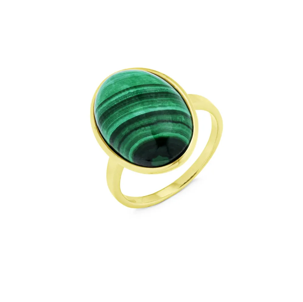 Sie lieben Schmuck, der Ihre Persönlichkeit unterstreicht und Ihre Schönheit hervorhebt? Dann ist dieser Damenring aus Silber 925/- fein, vergoldet, mit echt Malachit genau das Richtige für Sie. Dieser Ring besticht durch sein edles Design und seine hochwertige Verarbeitung. Der Ringkopf ist 20 mm breit und trägt einen ovalen Malachit in einem intensiven Grün. Der Malachit ist ein natürlicher Edelstein, der für Harmonie, Schutz und Kreativität steht. Er passt perfekt zu dem warmen Glanz des vergoldeten Silbers, das für Reinheit, Eleganz und Beständigkeit steht. Dieser Ring ist ein echter Hingucker, der zu jedem Anlass getragen werden kann.