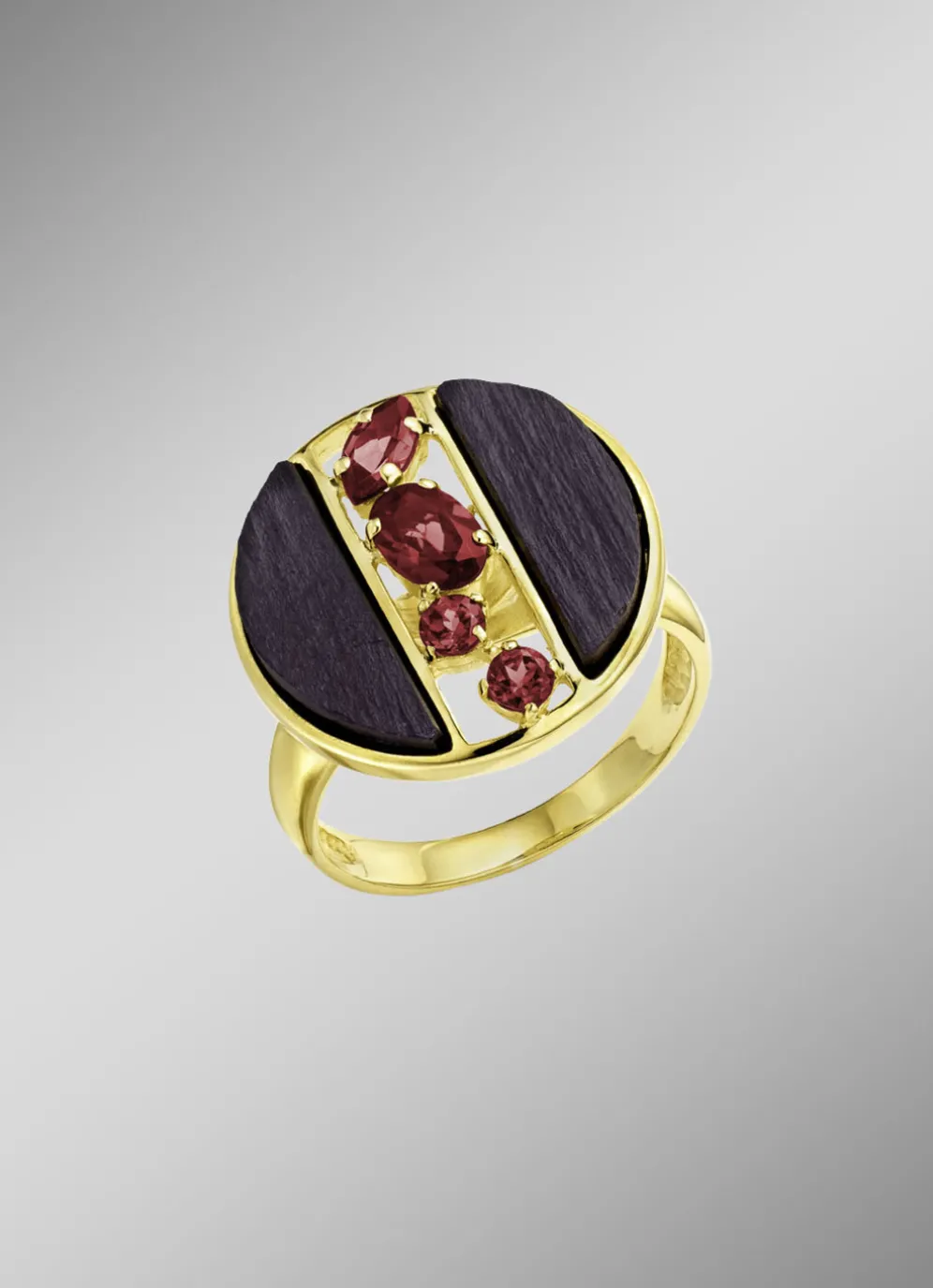 Damenring mit echt Rhodolith und Schiefer