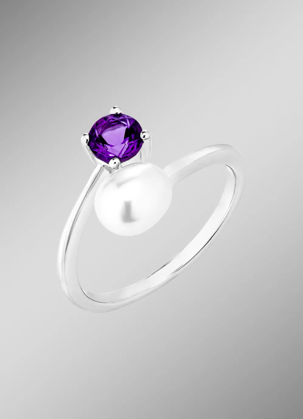 Damenring mit Süßwasser-Zuchtperle und Amethyst
