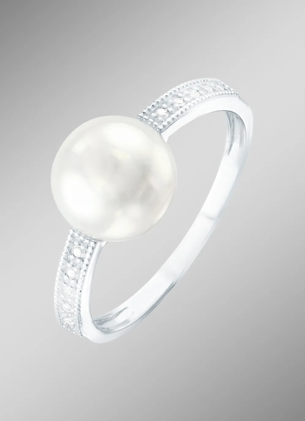 Damenring mit Süßwasser-Zuchtperle und Brillanten in der Legierung Weißgold 333/- fein und in Größe 160.