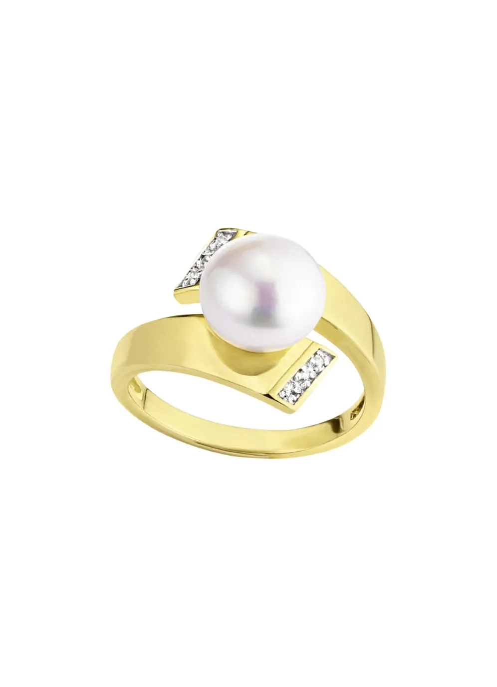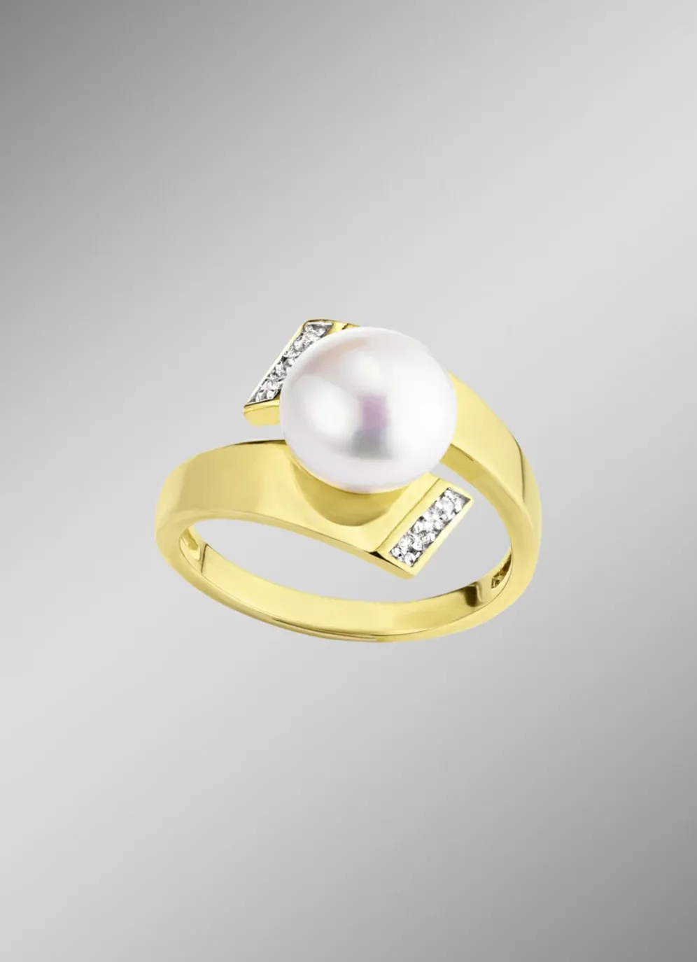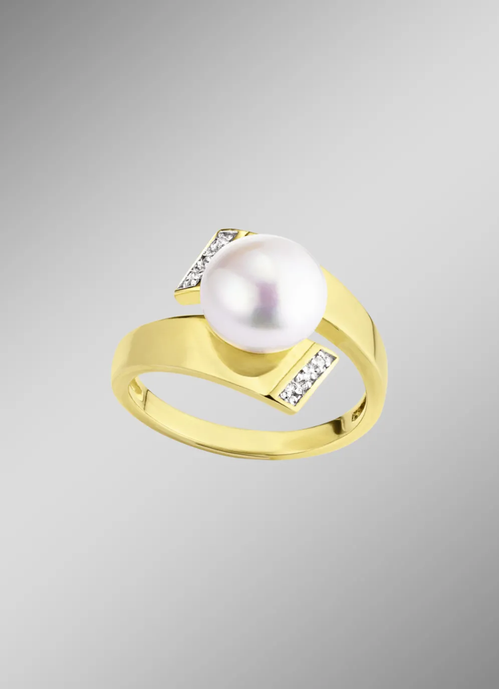 Damenring mit Süßwasser-Zuchtperle und synth. Zirkonia