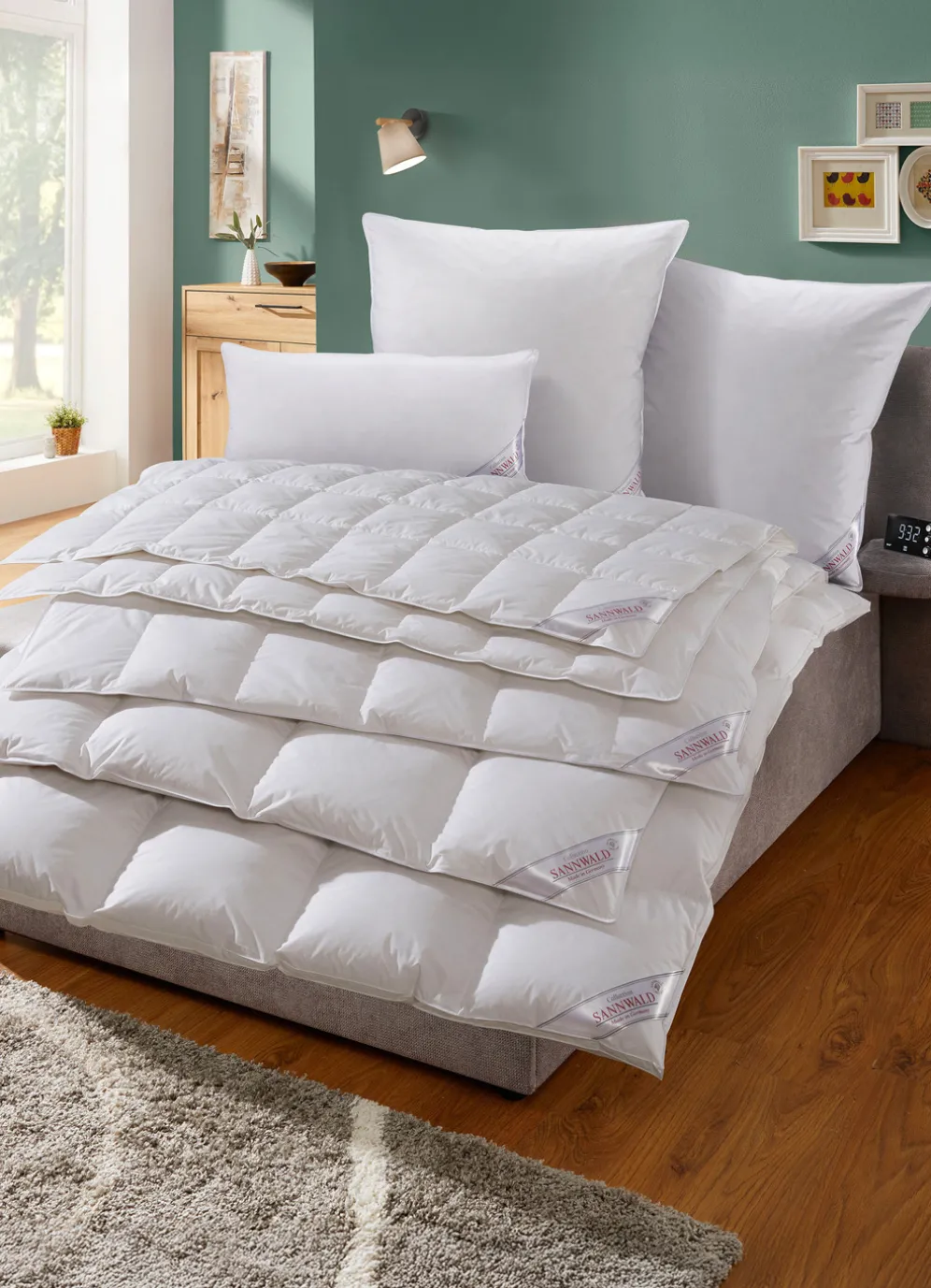 Die Kombination aus erlesenen Daunen und der innovativen Medicott®-Ausrüstung bei diesem hochwertigen Bettwarenprogramm von Sannwald sorgt für ein hygienisches, allergikerfreundliches Schlafklima. Die Innen- und Außenstege ermöglichen der kuschelig weichen Füllung bestes Entfalten und eine hohe Wärmespeicherung. Die Karo-Steppung verhindert ein Verrutschen der Füllung. Zertifiziert mit NOMITE – natürlicher Schutz für Hausstauballergiker und Asthmatiker. Waschbar bis 60 °C und trocknergeeignet
