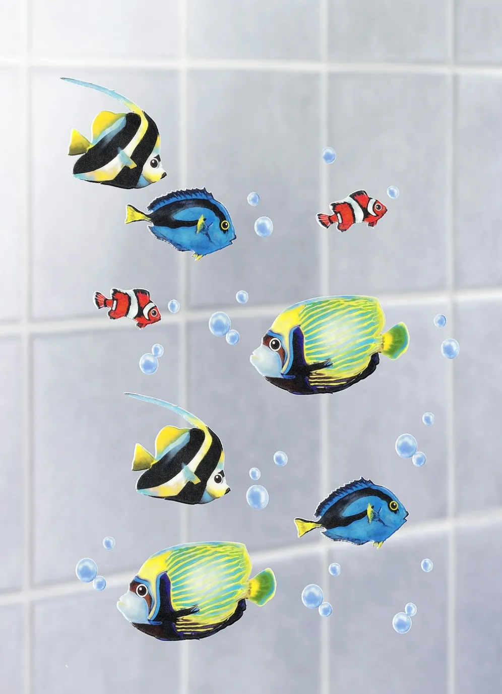 Schmücken Sie Ihr Badezimmer oder andere beliebige, glatte Oberflächen einfach und schnell mit diesen herrlichen Dekostickern in Form von Fischen. Aus selbsthaftender Folie – problemlos aufkleben und wieder abziehen. Maße: L4–7,5xH2–5 cm.