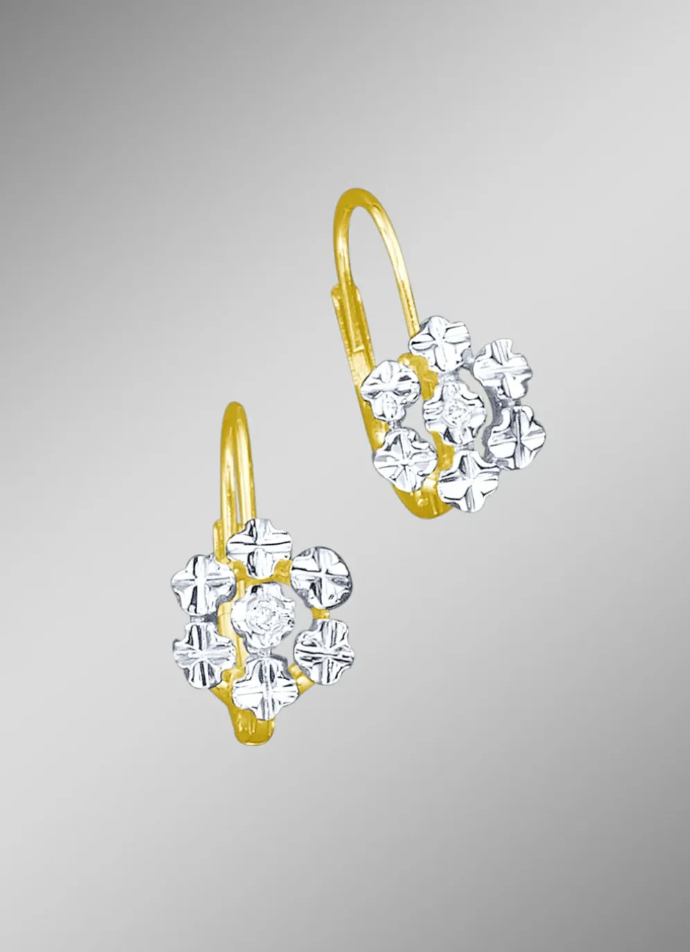 Diamant-Ohrringe in Blütenfrom mit 2 lupenreinen Brillanten in der Legierung Gold 585/- fein.
