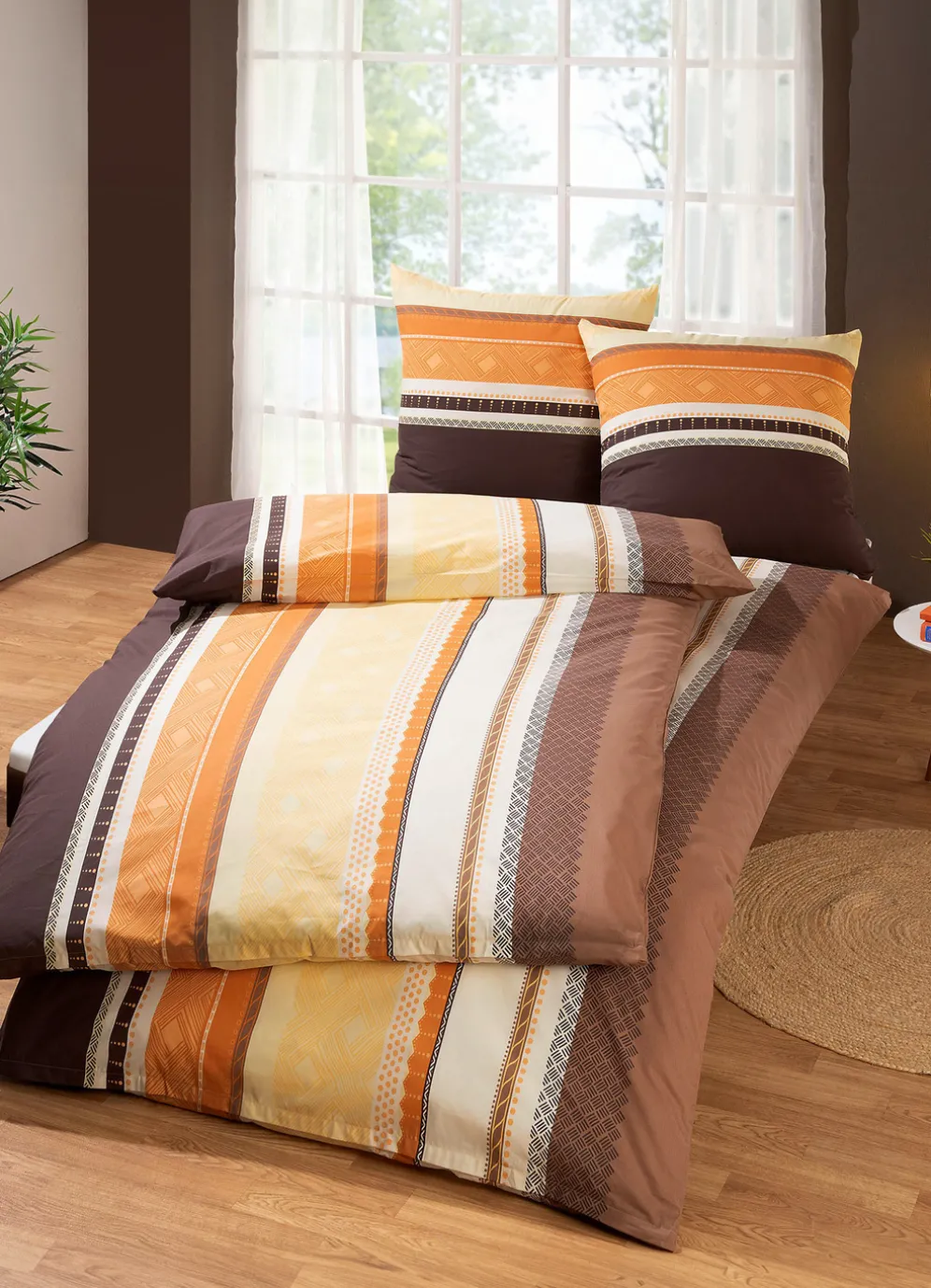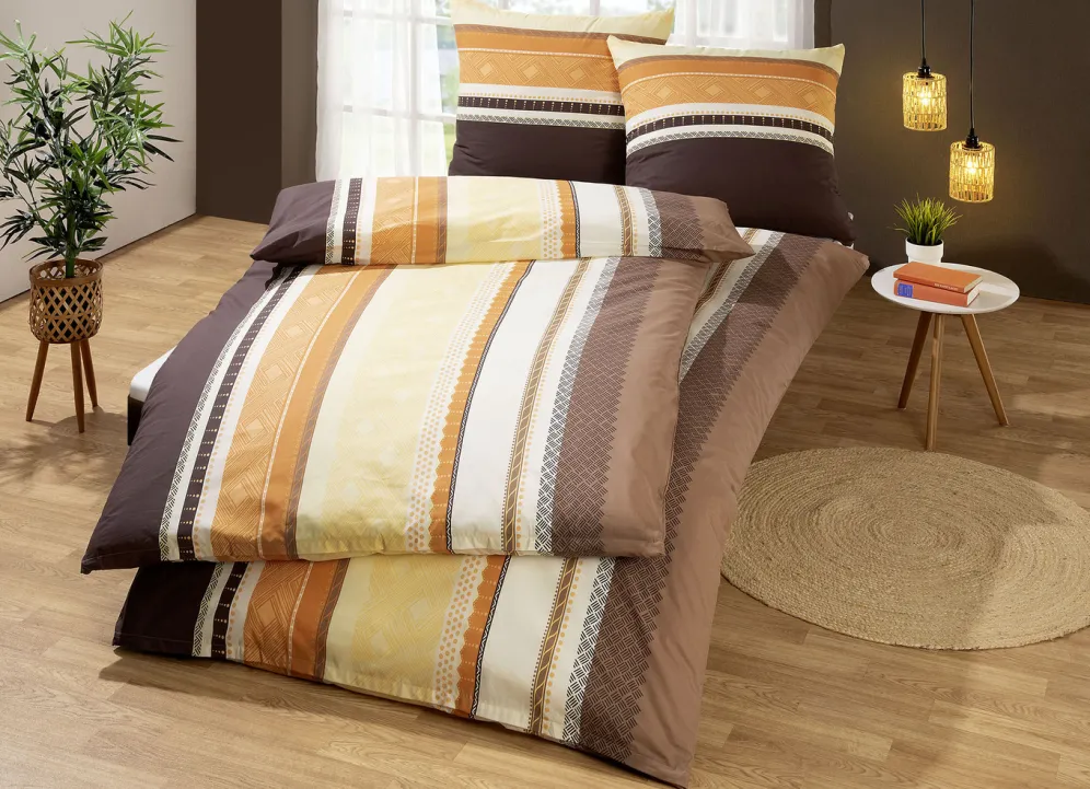 „DOBNIG“ Bettwäsche-Garnitur in Größe 111(40/80 cm + 135/200 cm), in Qualität Biber sowie in Marone-Gold.
