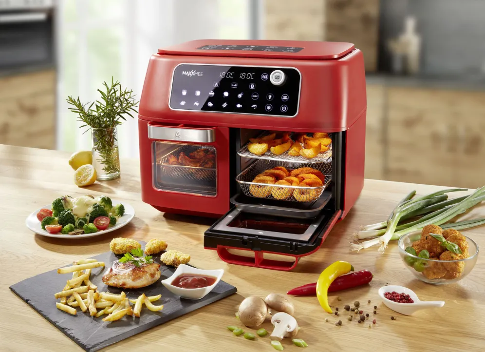 Doppelkammer-Fritteuse:2 Gerichte – fertig zur gleichen Zeit! in Rot.