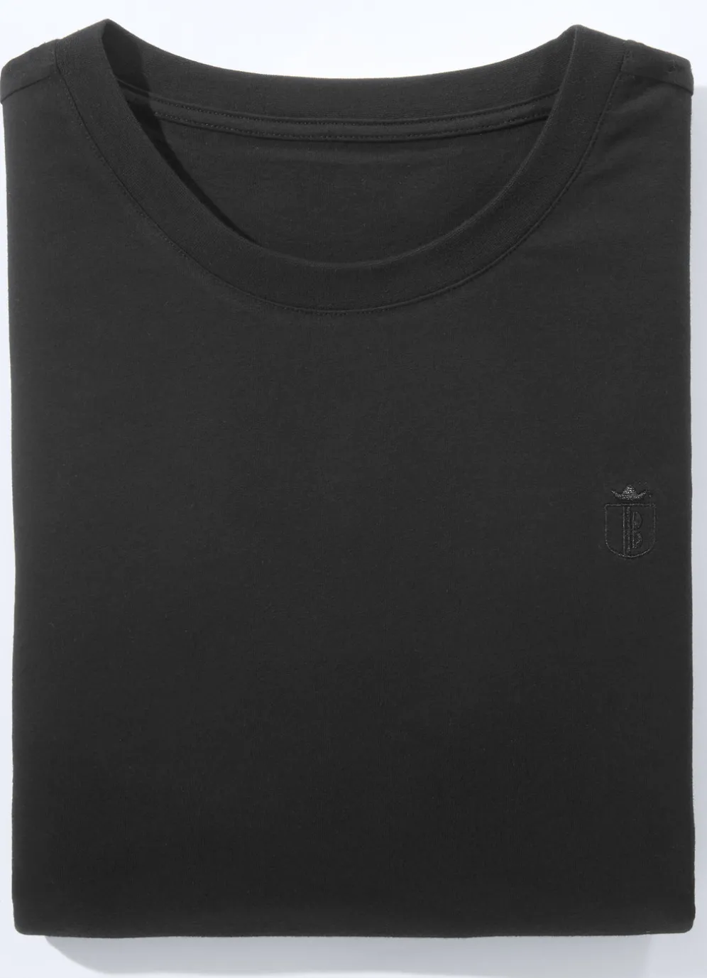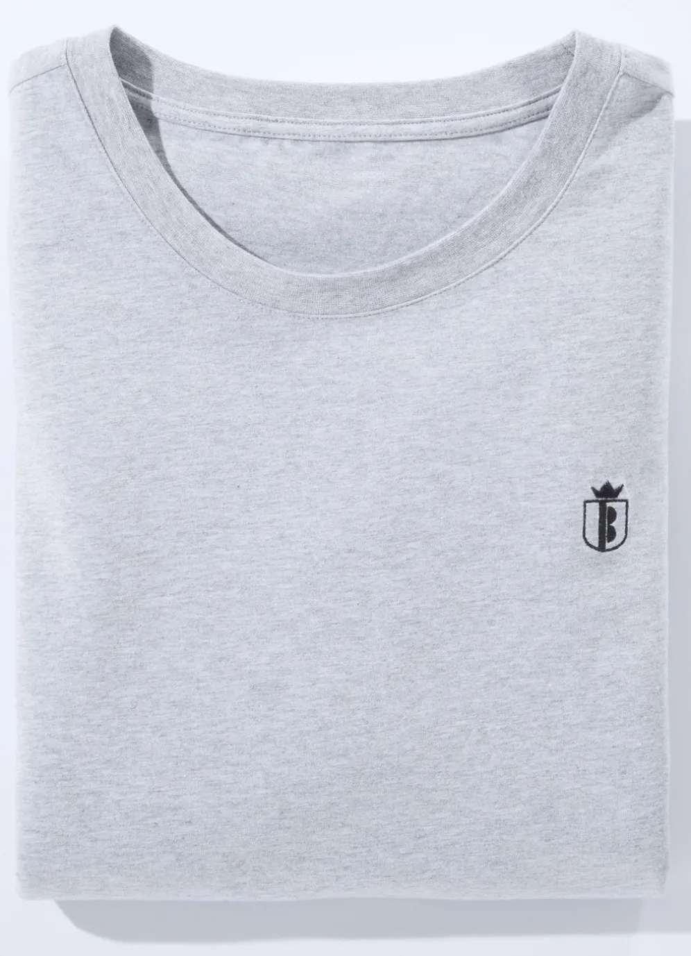 Doppelpack Shirt mit rundem Halsausschnitt und Stickerei im Vorderteil links.