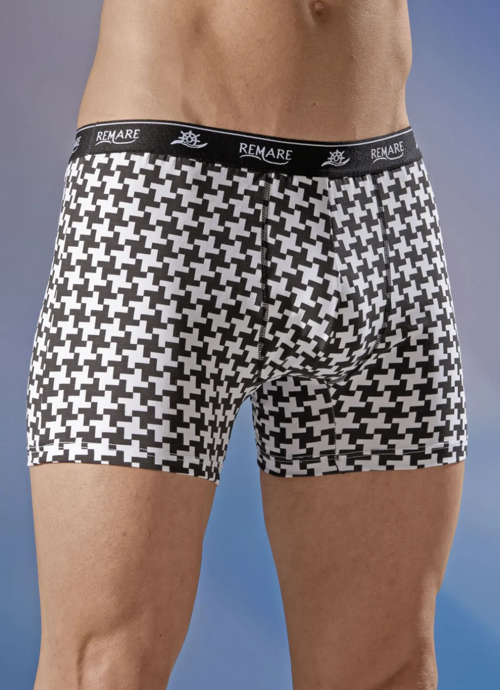 Pants mit schwarz-weißem Alloverdessin, Elastikbund sowie unterlegtem Vorderteileinsatz.