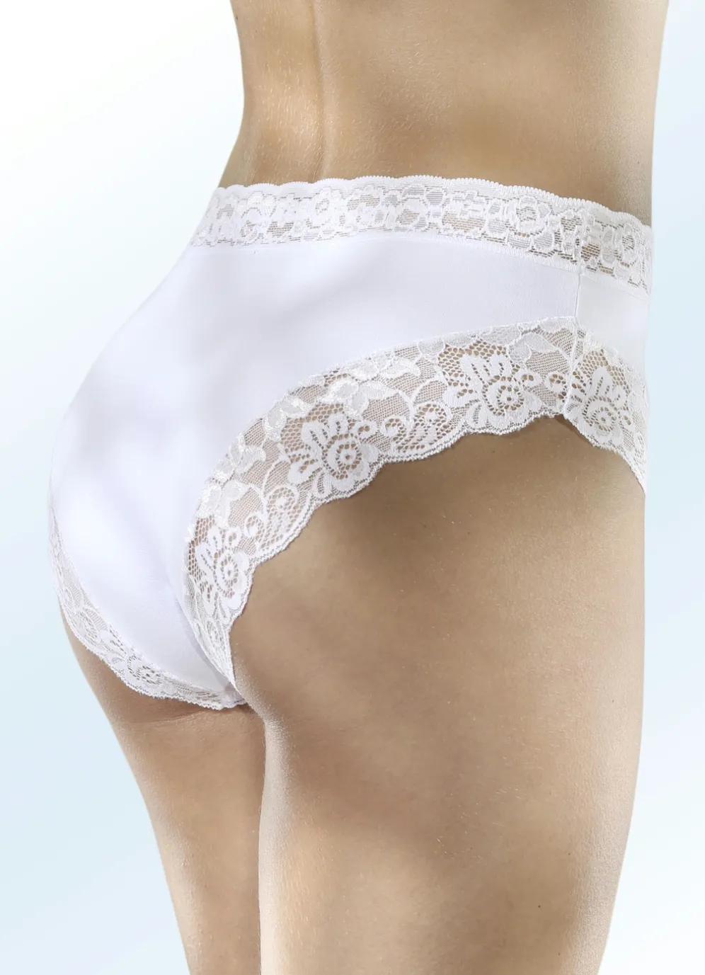 Slip mit floraler Elastikspitze an den Beinabschlüssen sowie Elastikspitzenbund.