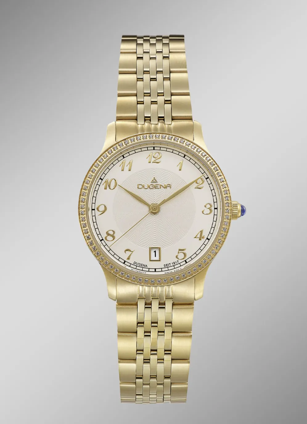 Mit dieser Uhr machen Sie nicht nur ein Statement von zeitloser Schönheit, sondern investieren auch in Qualität und Beständigkeit. Die Dugena Damenuhr – wo Eleganz auf Präzision trifft.