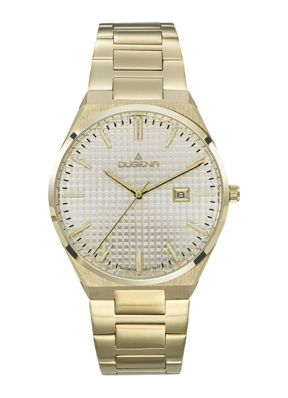 Entdecken Sie Eleganz und Präzision vereint in der Dugena-Quartz-Herrenuhr. Mit einem Gehäusedurchmesser von 40 mm und einer Wasserdichtigkeit von 10 bar ist diese Uhr nicht nur ein stilvolles, sondern auch ein robustes Accessoire für den modernen Mann. Das Herzstück bildet ein zuverlässiges Quartzwerk, das Genauigkeit bis zur letzten Sekunde garantiert.