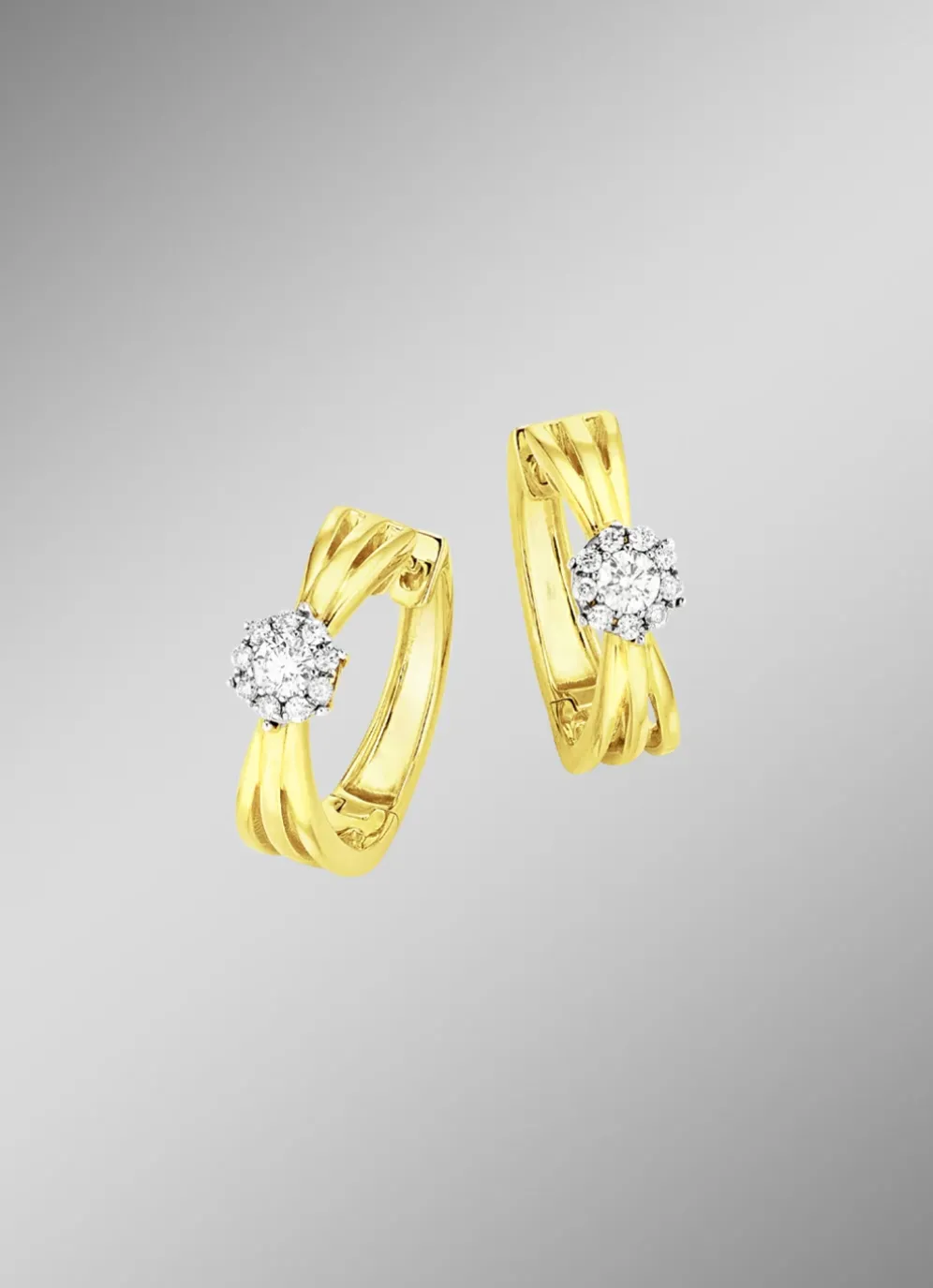 Durchbrochene Klappcreolen mit 20 Brillanten in der Legierung Gold 585/- fein.