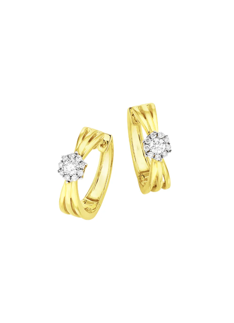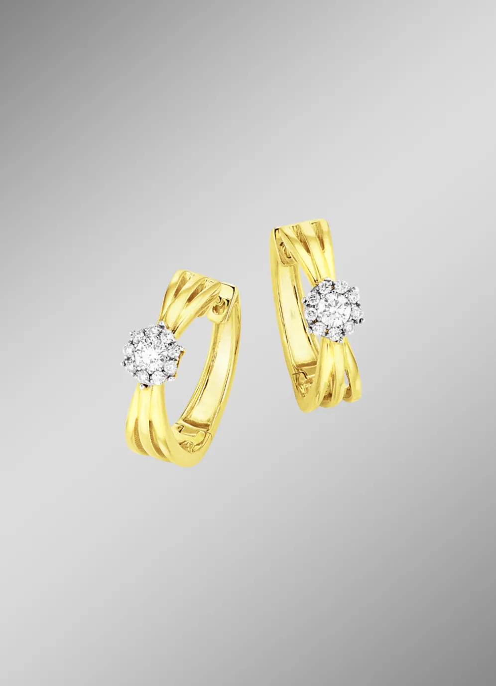 Verleihen Sie Ihrem Look einen Hauch von Glamour mit diesen eleganten Klappcreolen aus Gold 585/- fein. Diese Ohrringe sind durchbrochen und mit 20 funkelnden Brillanten in Weiß besetzt, die zusammen ca. 0,28 Karat haben. Die Reinheit der Diamanten ist Piqué 2. Die Ohrringe haben einen Durchmesser von 16 mm und passen perfekt zu jedem Outfit.