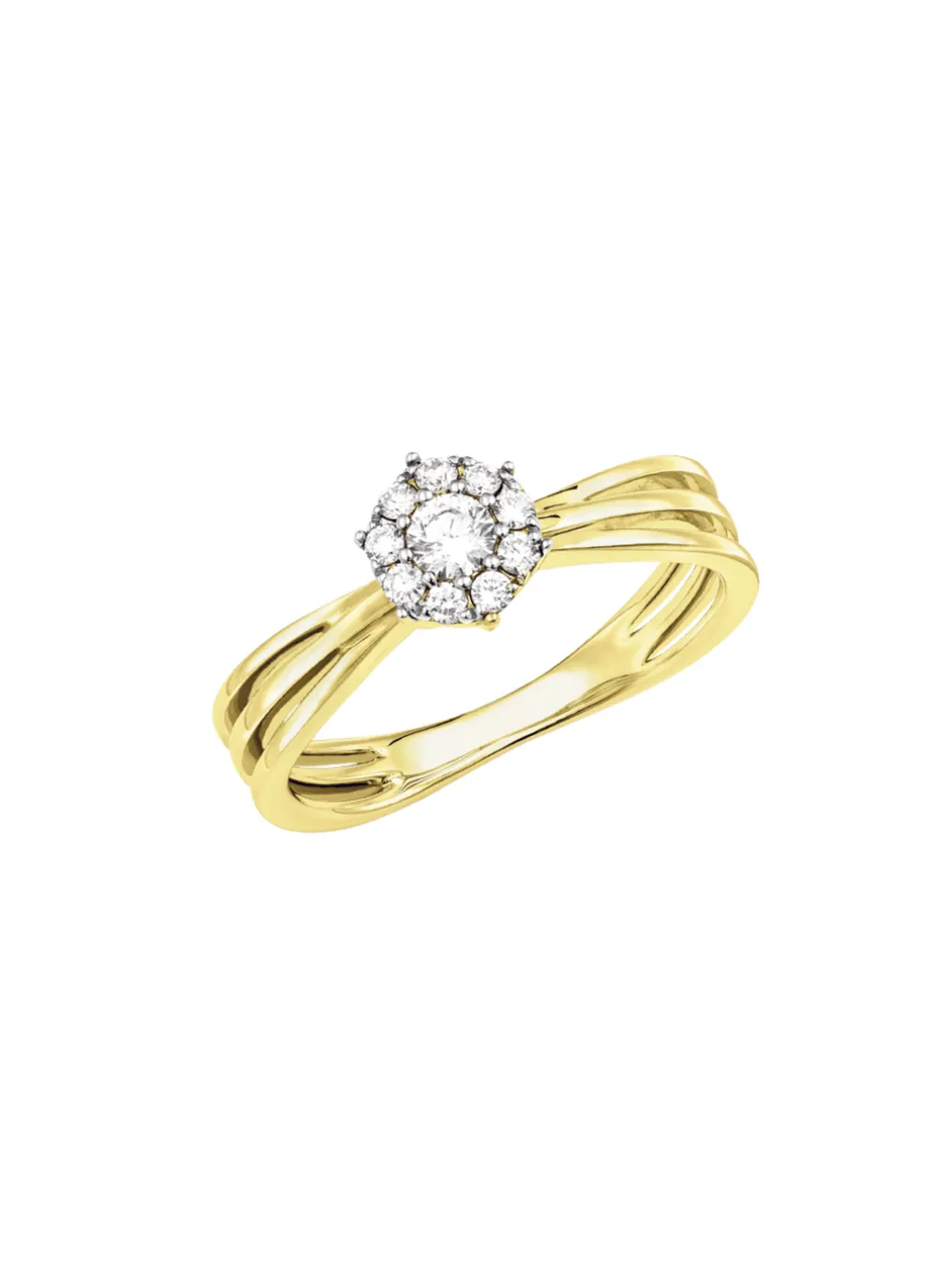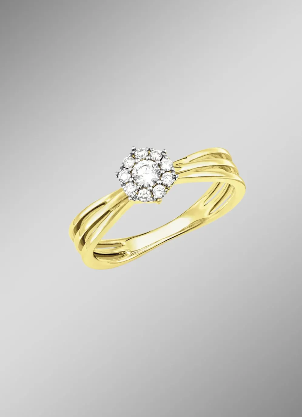 Durchbrochener Damenring mit 10 Brillanten in der Legierung Gold 585/- fein und in Größe 180.