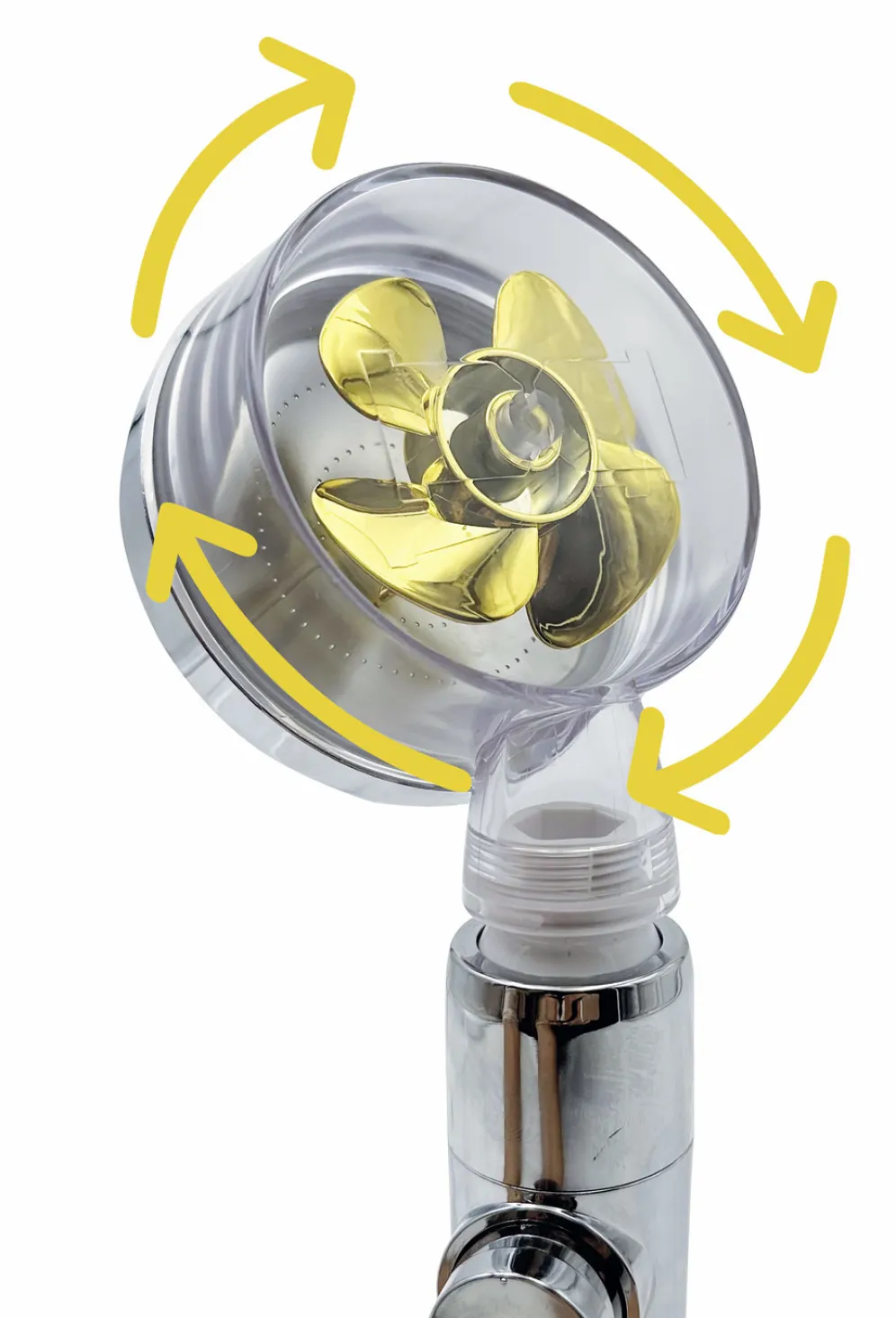 Duschkopf Aquadon EcoTornado mit genialem Turbinen-Effekt in Gold.