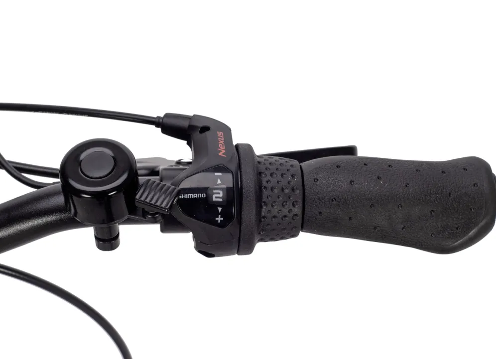 Die am Lenker schaltbaren 3 Leistungsstufen, die zusätzlich zur Shimano Nexus-3-Gang-Nabenschaltung eingesetzt werden können, ermöglichen einen variablen Geschwindigkeitskomfort. Promax V-Bremsen vorne und hinten sowie eine Rücktrittbremse sorgen für höchste Sicherheit.