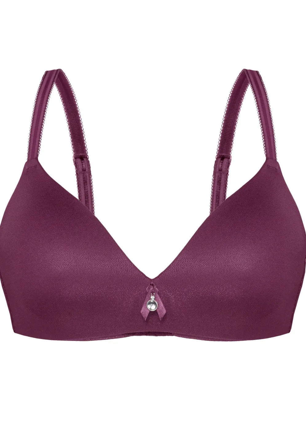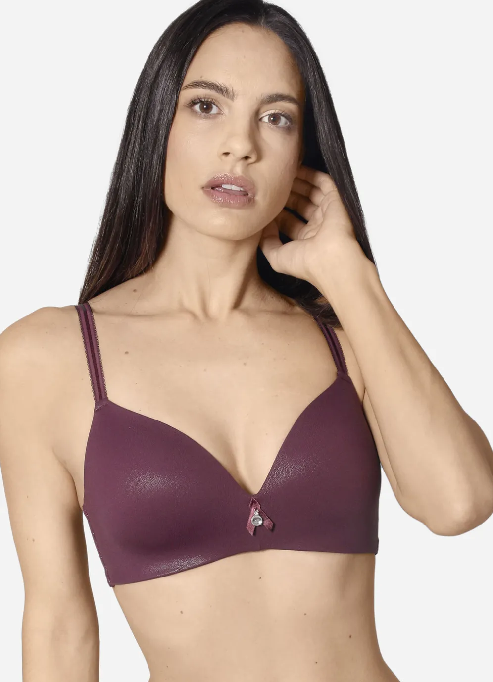 Edel schimmernder „Sassa“-BH in Lederoptik, mit vorgeformten, weich gepolsterten Cups, Schmuckzier in der Büstenmitte, seitlichen Stützstäbchen, verstärktem Rückteil sowie verstellbaren Stretchträgern.