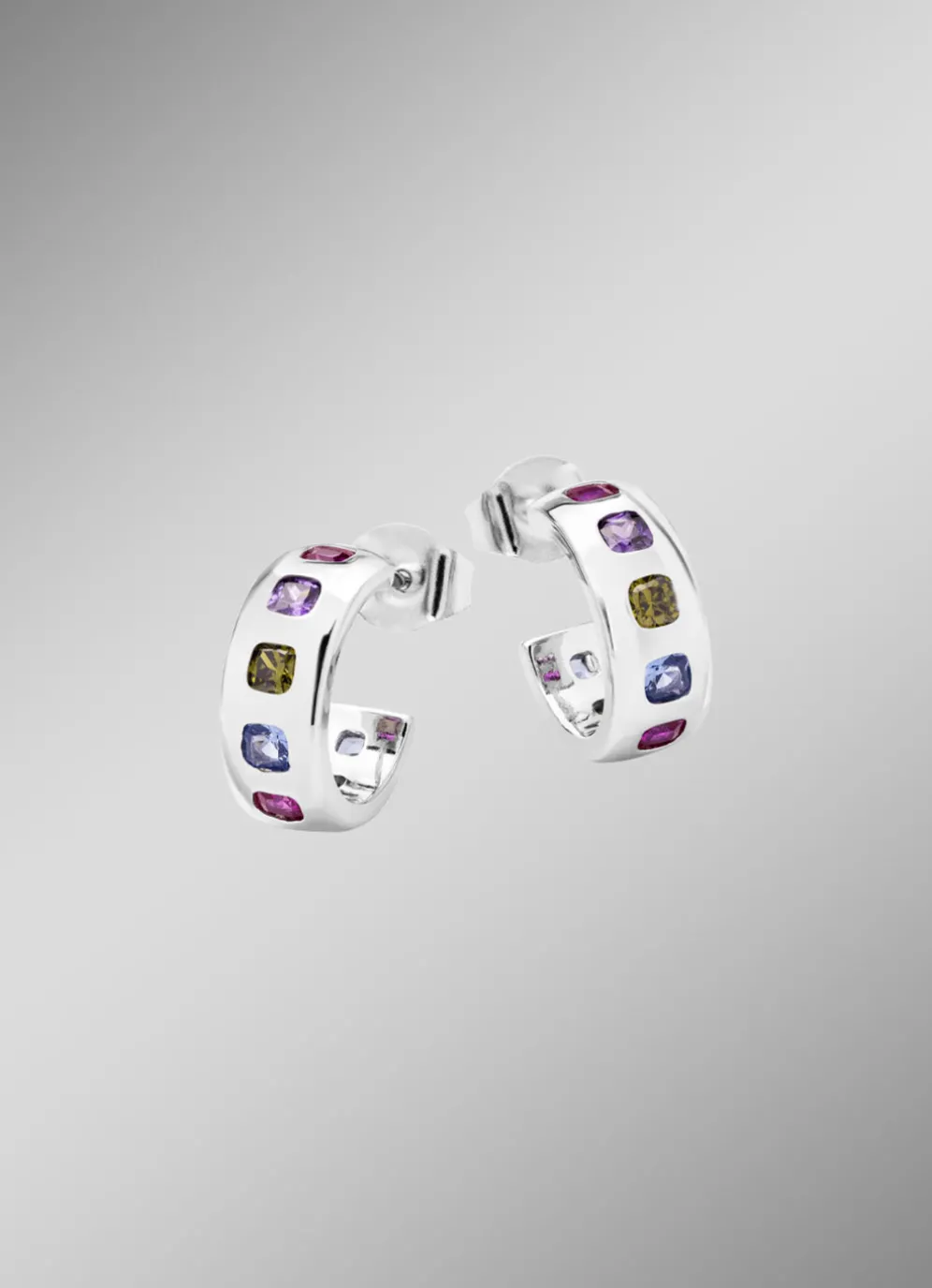aus feinem Silber 925/- strahlen Eleganz und Lebendigkeit aus. Die funkelnden synthetischen Zirkonia in Amethyst-, Blautopas-, Peridot- und Rubinfarben sorgen für ein faszinierendes Farbspiel, während das polierte Finish den Ohrschmuck zu einem echten Hingucker macht. Mit einem Durchmesser von 17 mm vereinen diese Ohrstecker zeitlose Schönheit und modernes Design – ein Must-have für jede Schmuckliebhaberin
