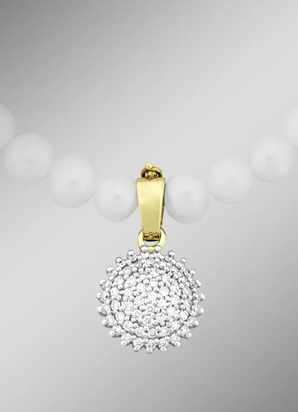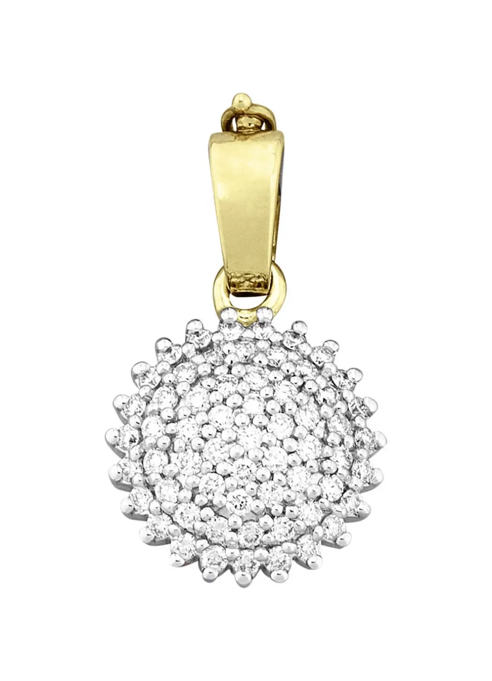 Die 60 Brillanten von zusammen 0,50 ct., Weiß, SI, erzeugen ein feuriges Funkeln und damit eine ansprechende Atmosphäre. Der Anhänger wurde aus Gold 585/- fein gefertigt und hat einen Durchmesser von 13 mm. Die Lieferung erfolgt ohne Kette. Eine große Auswahl passender Ketten finden Sie in unserem Sortiment.