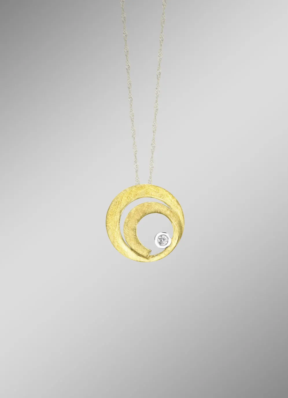 Schlichte Eleganz mit raffiniertem Design: Dieser Anhänger aus Gold 585/- fein vereint zeitlose Schönheit mit meisterhafter Verarbeitung. Ein strahlender Brillant in edlem Weiß mit Reinheitsklasse SI setzt einen dezenten, aber wirkungsvollen Akzent. Die satinierten Oberflächen verleihen dem Schmuckstück eine sanfte, matte Eleganz, während die verdeckte Öse für eine harmonische und fließende Optik sorgt.