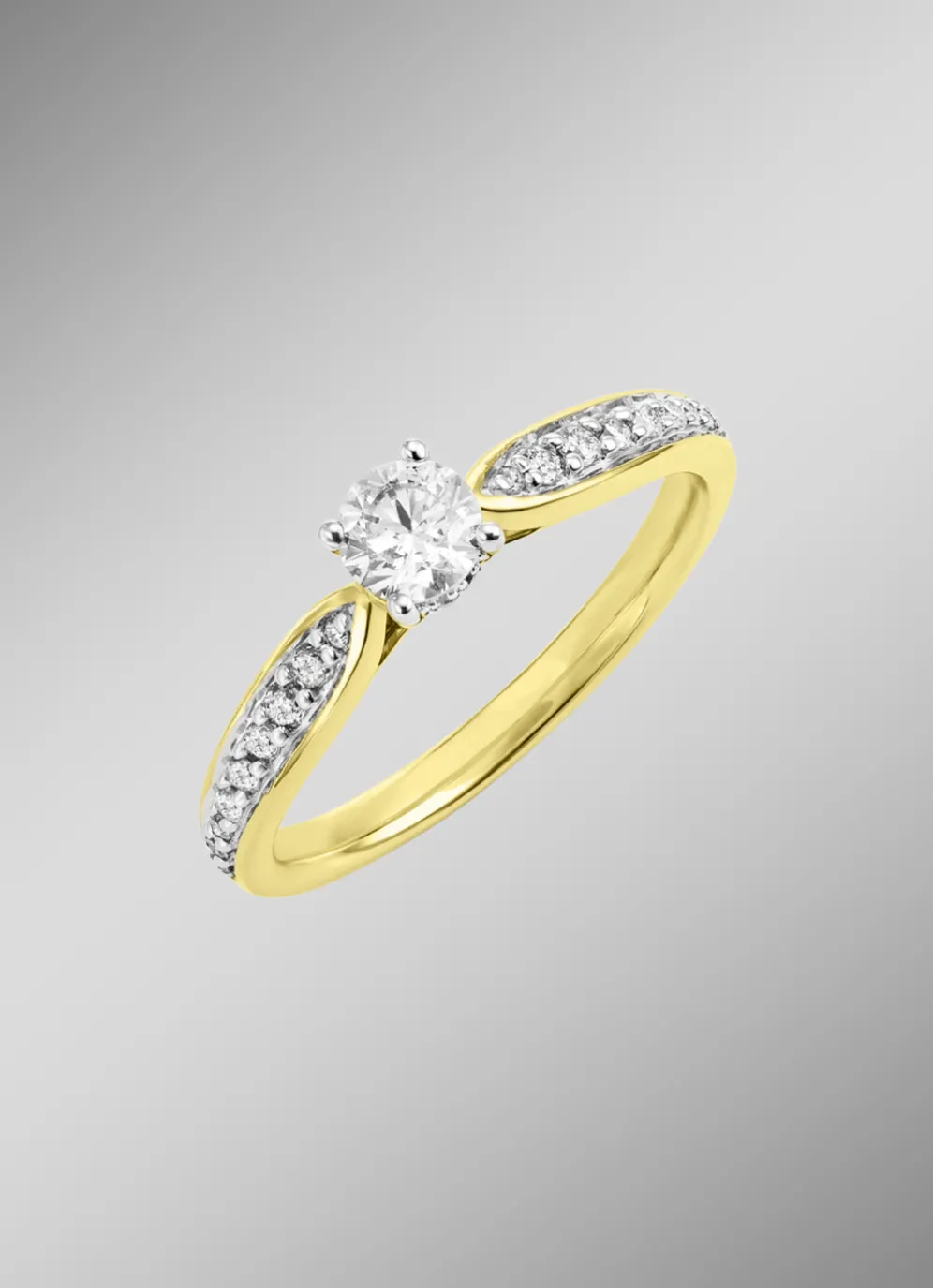 Dieser wunderschöne Damenring aus Gold 585/- fein ist ein echtes Schmuckstück. Mit 19 funkelnden Brillanten und 4 Diamanten in Weiß, zusammen ca. 0,33 ct., Piqué 2 ist dieser Ring ein echter Hingucker. Der Ringkopf hat einen Durchmesser von 4 mm.
