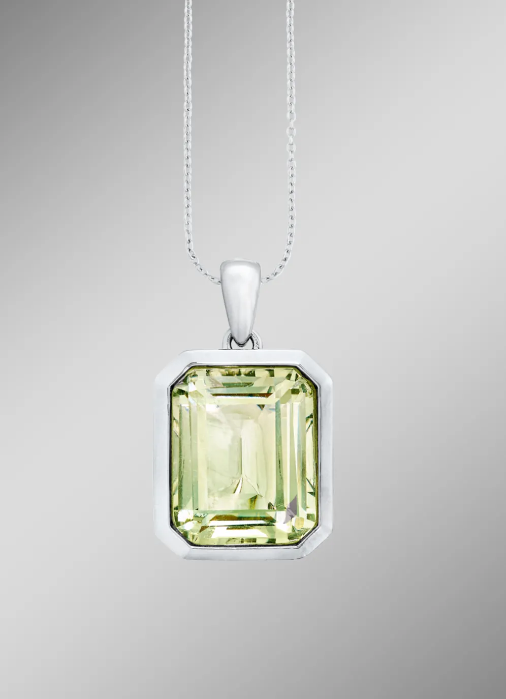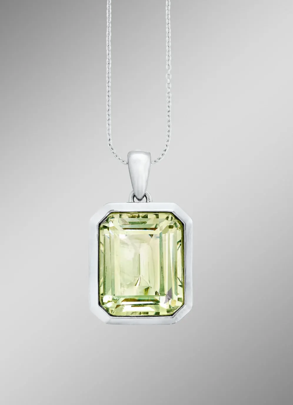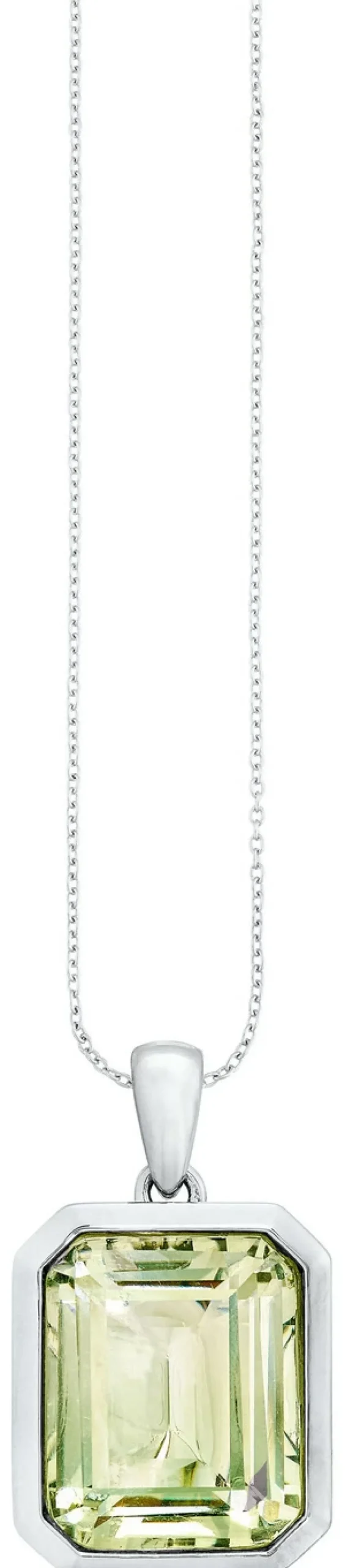 Effektvoller Anhänger aus Silber 925/- fein mit echt grünem Amethyst. Der grüne Edelstein passt mit seinem zarten Pastellton perfekt zum Silber der 45 cm langen Kette. Das Schmuckstück ist ca. 17×15 mm groß. Ein wunderbares Accessoire für jeden Anlass und das perfekte Geschenk für alle, die außergewöhnliche Edelsteine lieben