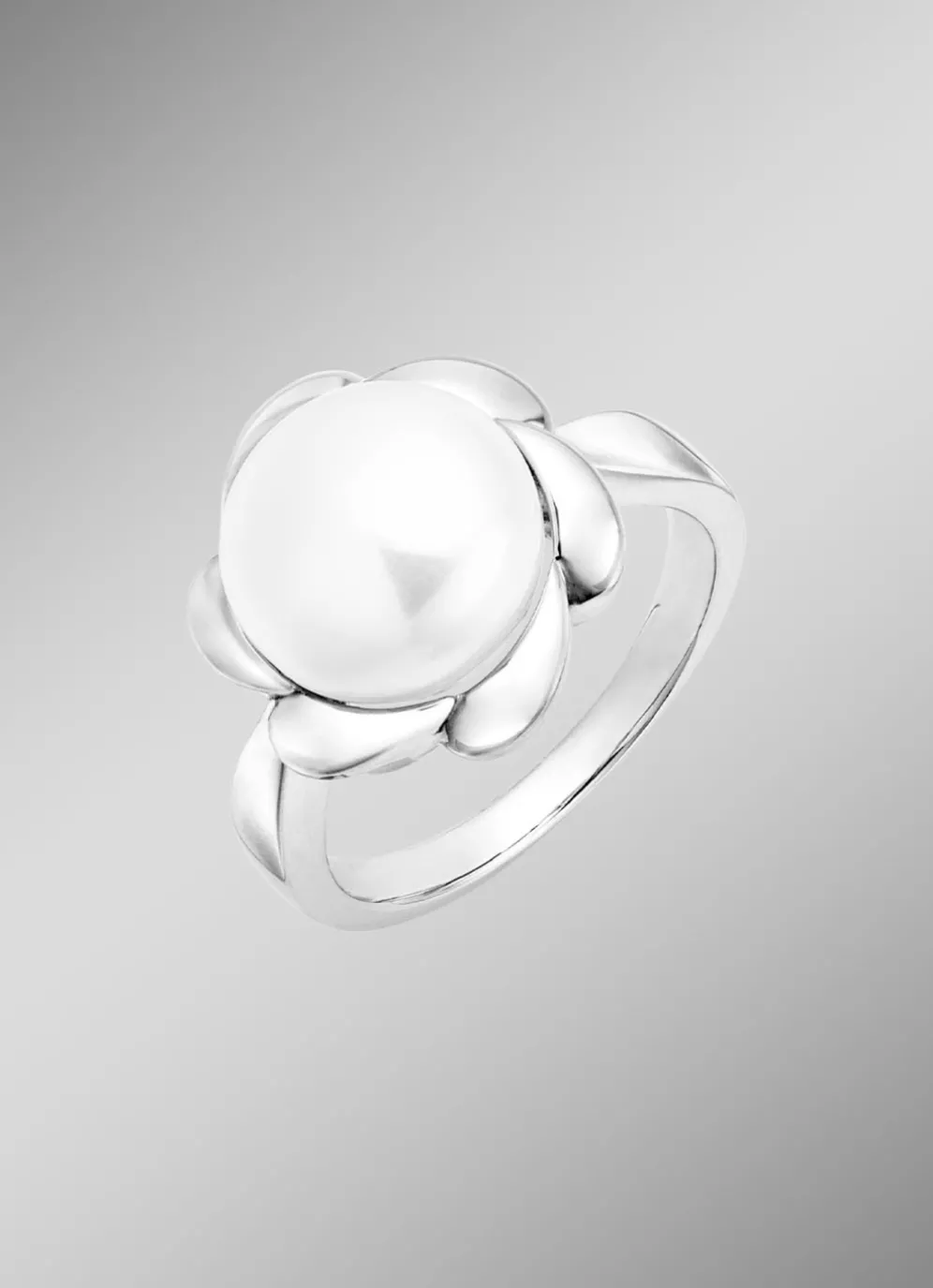 Verleihen Sie Ihrem Stil einen Hauch von natürlicher Eleganz: Dieser Damenring aus feinstem Silber 925/- begeistert mit seinem einzigartigen Blumendesign. Die imposante Süßwasser-Zuchtperle mit einem Durchmesser von 12 mm bildet das strahlende Zentrum, umgeben von einer kunstvollen Blüte mit einem Durchmesser von 15 mm.
