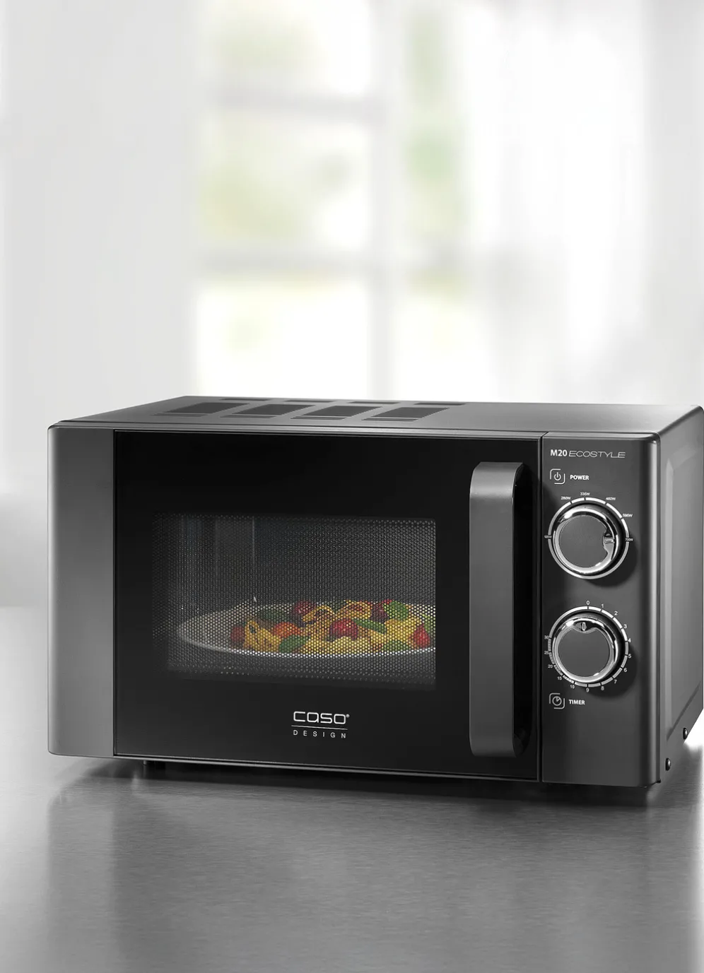 Einfach zu bedienende CASO Mikrowelle in Schwarz.