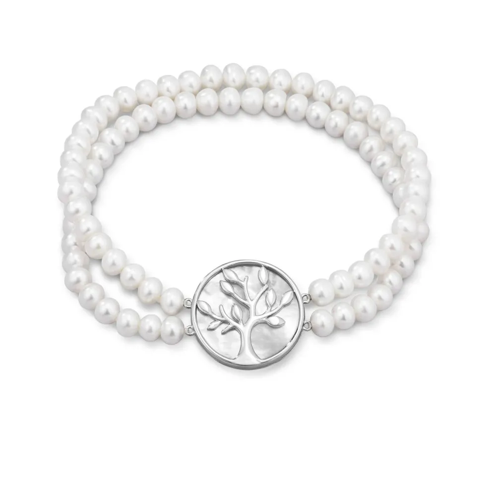Dieses elastische, 2-reihige Armband aus Silber 925/- fein mit Süßwasser-Zuchtperlen und einem Lebensbaum in der Mitte harmoniert mit jedem Outfit. Der Perlendurchmesser beträgt 6 mm