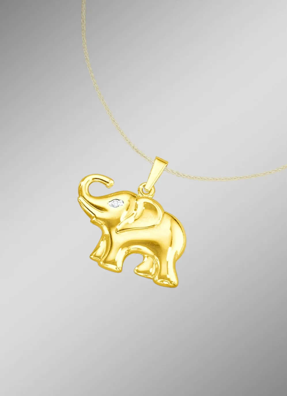 Elefanten Anhänger mit Diamant in der Legierung Gold 333/- fein.
