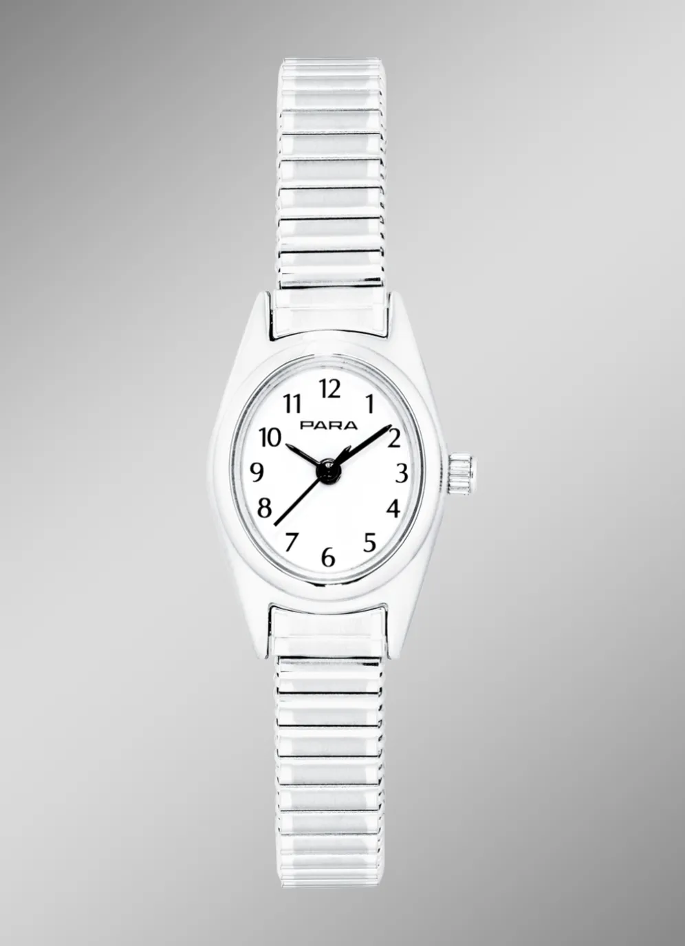 Elegante Quartz-Damenuhr der Marke Para. Die Damenuhr hat ein Stahlgehäuse, ein Stahlzugband und Mineralglas. Die Uhr ist 3 bar wasserdicht und hat eine Gehäusebreite von 19 mm.