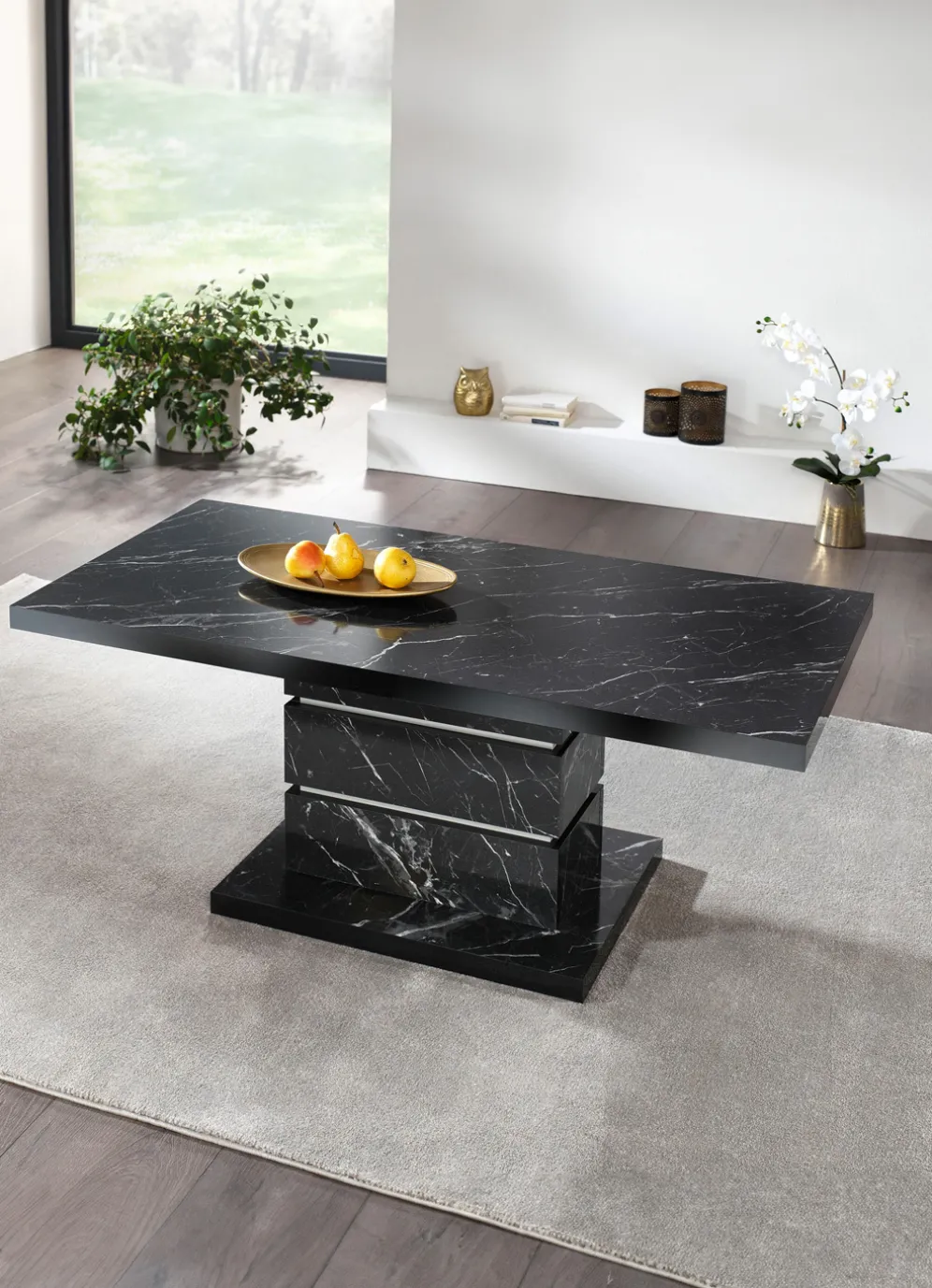 Eleganter Couchtisch mit Marmor-Optik in Marmor-Grau.