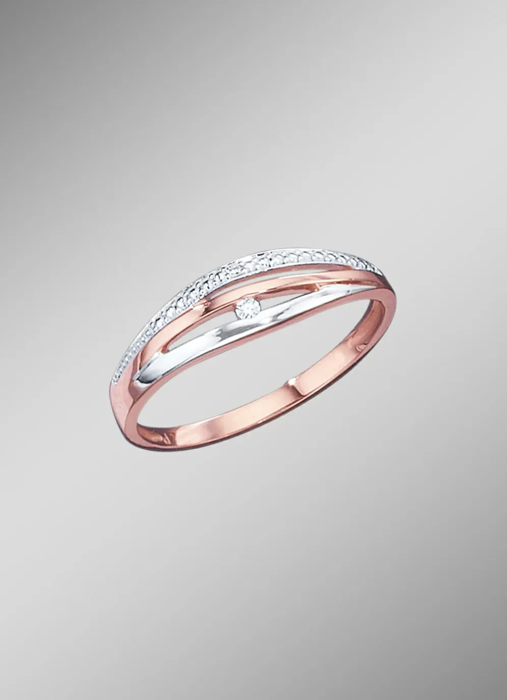 Eleganter Damenring in Bicolor mit Brillanten in der Legierung Roségold 333/- fein und in Größe 210.