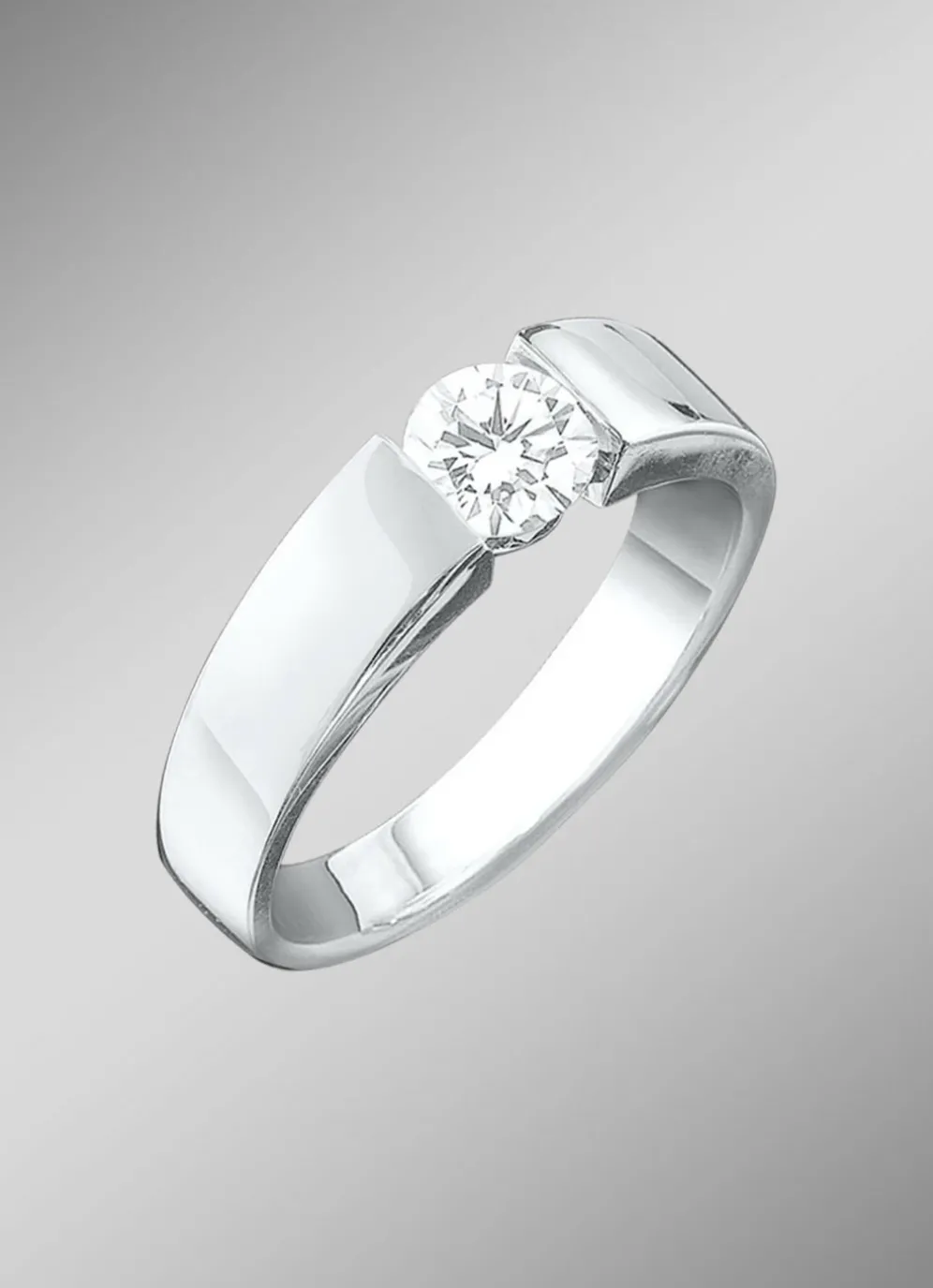 Eleganter Damenring in Weißgold mit Brillant mit 0,25 ct., in der Legierung Weißgold 585/- fein sowie in Größe 200.