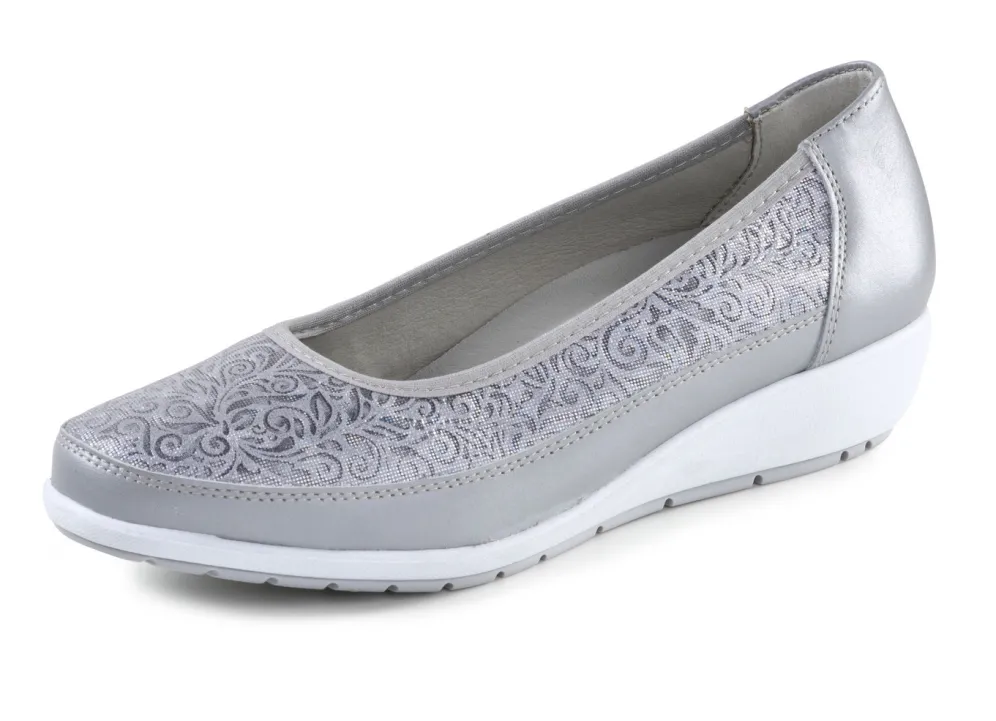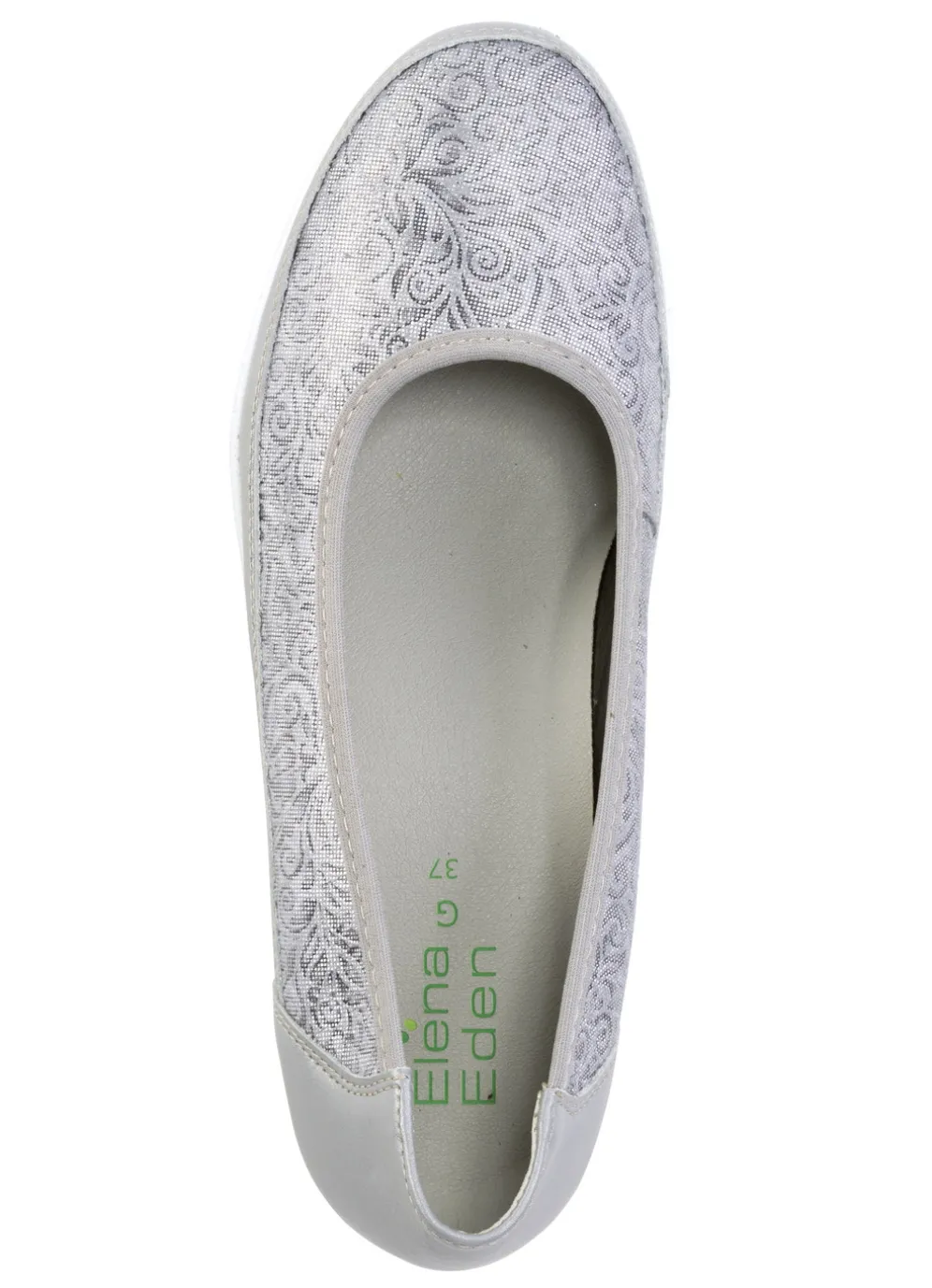 Ballerinas von ELENA EDEN aus Nappaleder und glänzend geprägtem Leder: Weite G, Rundum-Gummizug, Futter, herausnehmbares Fußbett, leichte Synthetik-Profilsohle sowie 20 mm Keilabsatz