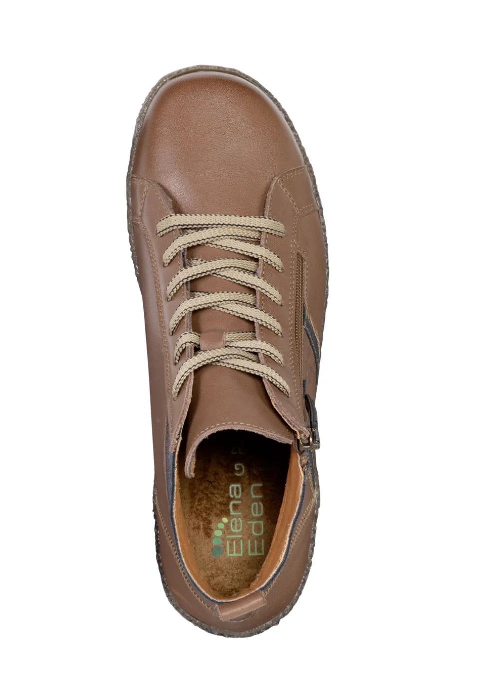 Boots von ELENA EDEN aus Nappaleder, mit geprägtem Einsatz, Schnürung und Seitenreißverschluss: Weite G, Futter, herausnehmbares Fußbett, leichte Synthetik-Profilsohle sowie 10 mm Keilabsatz. Schafthöhe ca. 8 cm