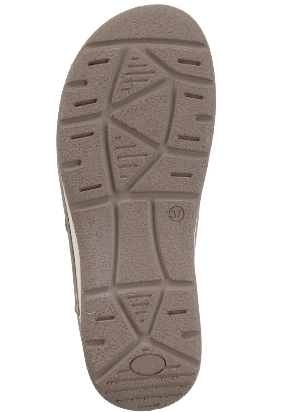 ELENA EDEN, bequeme Damen-Pantoletten, Weite H, mit herausnehmbarem Fußbett in Taupe-Antikbronze und in Größe 36.