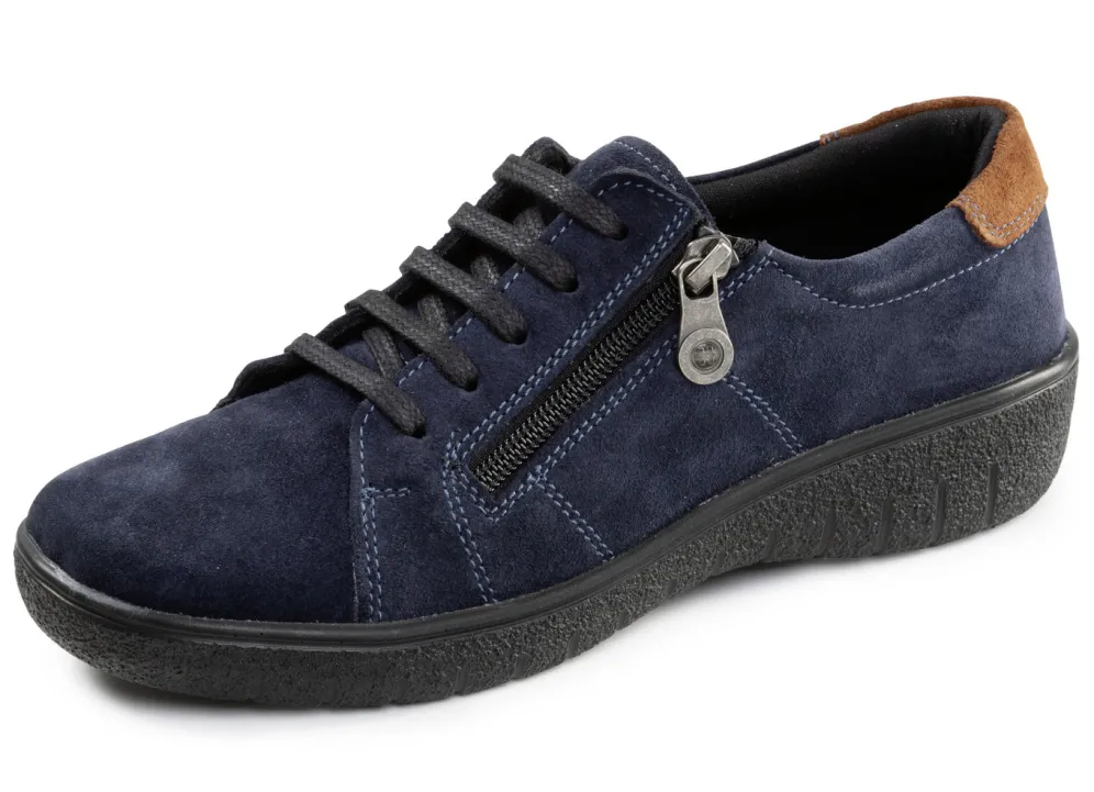 ELENA EDEN, bequeme Damen-Schnürschuhe, Weite G, mit herausnehmbarem Fußbett in Marine und in Größe 39.