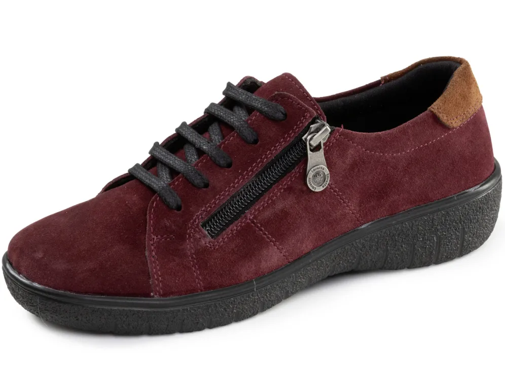 Schnürschuhe von ELENA EDEN aus weichem Veloursleder mit Kontrast-Besatz: Weite G, Seitenreißverschluss, Textilfutter, herausnehmbares Lederfußbett, leichte PU-Laufsohle mit 20 mm Keilabsatz
