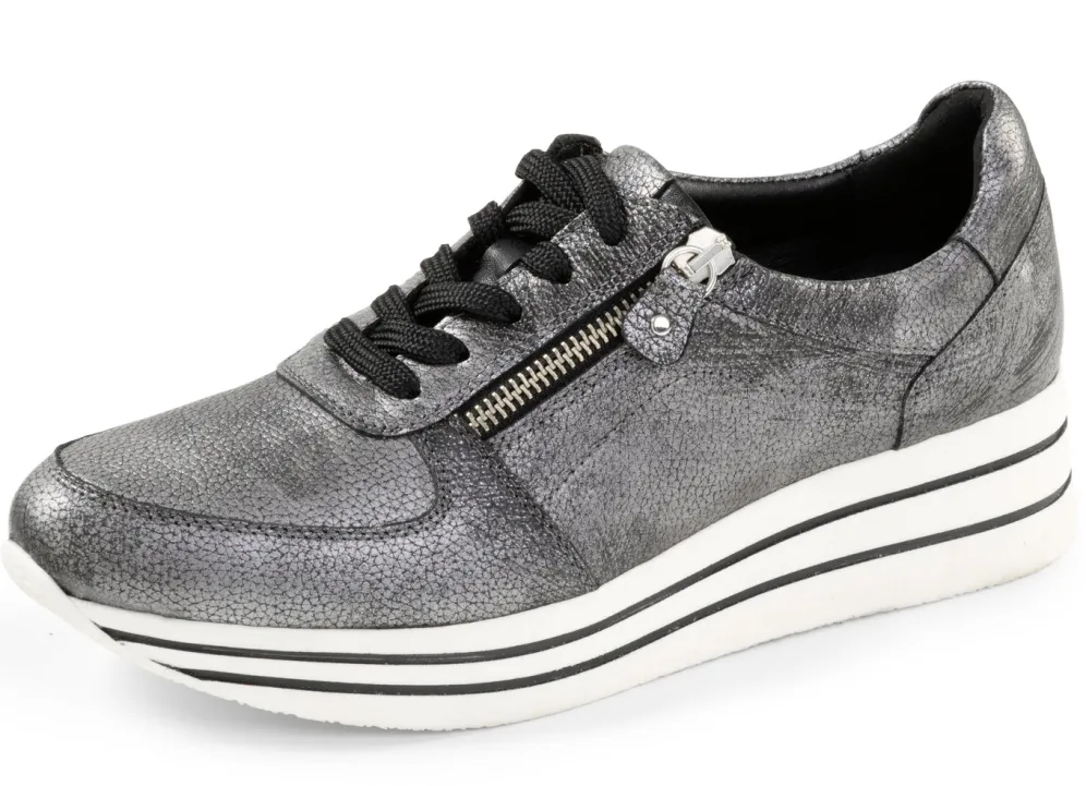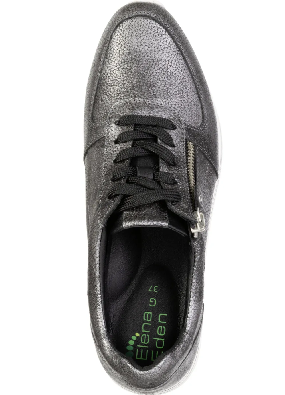 Sneaker von ELENA EDEN, aus Nappaleder mit Schnürung und seitlichem Reißverschluss: Weite G, Futter, herausnehmbares Fußbett, leichte TR-Laufsohle mit Plateau sowie 15 mm Keilabsatz