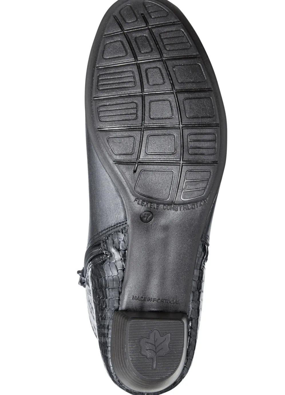 Stiefeletten von ELENA EDEN, aus Nappaleder und glänzend geprägtem Leder: in Weite G, zwei seitliche Reißverschlüsse, Textilfutter, herausnehmbares Fußbett, leichte TR-Profilsohle sowie 35 mm Absatz. Schafthöhe ca. 12 cm