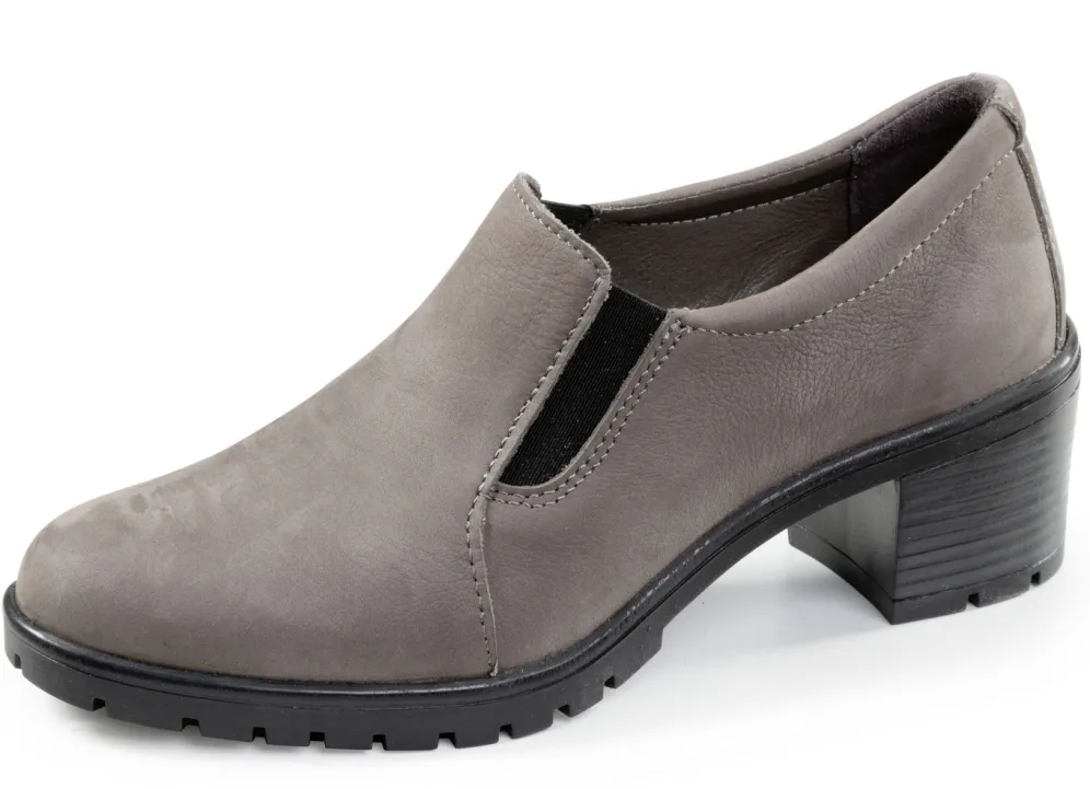 Trotteur von ELENA EDEN, aus Nappa- oder Nubukleder, mit seitlich eingesetzten Gummizügen: Weite H, Futter, herausnehmbares Lederfußbett, leichte TR-Profilsohle sowie 40 mm Blockabsatz