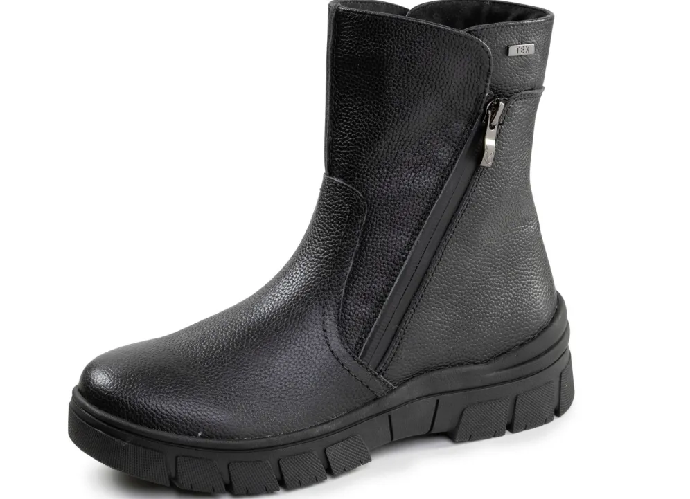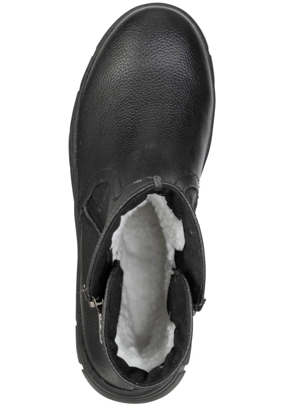 Schwarze Boots von ELENA EDEN aus genarbtem Nappaleder mit zwei seitlichen Reißverschlüssen: Weite G, mit Klimamembrane ausgestattet, Warmfutter, herausnehmbares Fußbett, leichte TPR-Laufsohle sowie 20 mm Keilabsatz. Schafthöhe ca. 16 cm