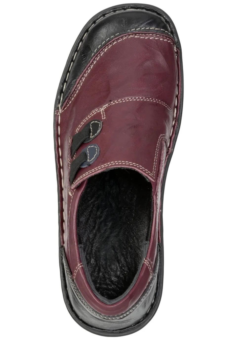 ELENA EDEN, klassische Damen-Slipper, Weite G, mit herausnehmbarem Fußbett in Burgund-Schwarz und in Größe 41.