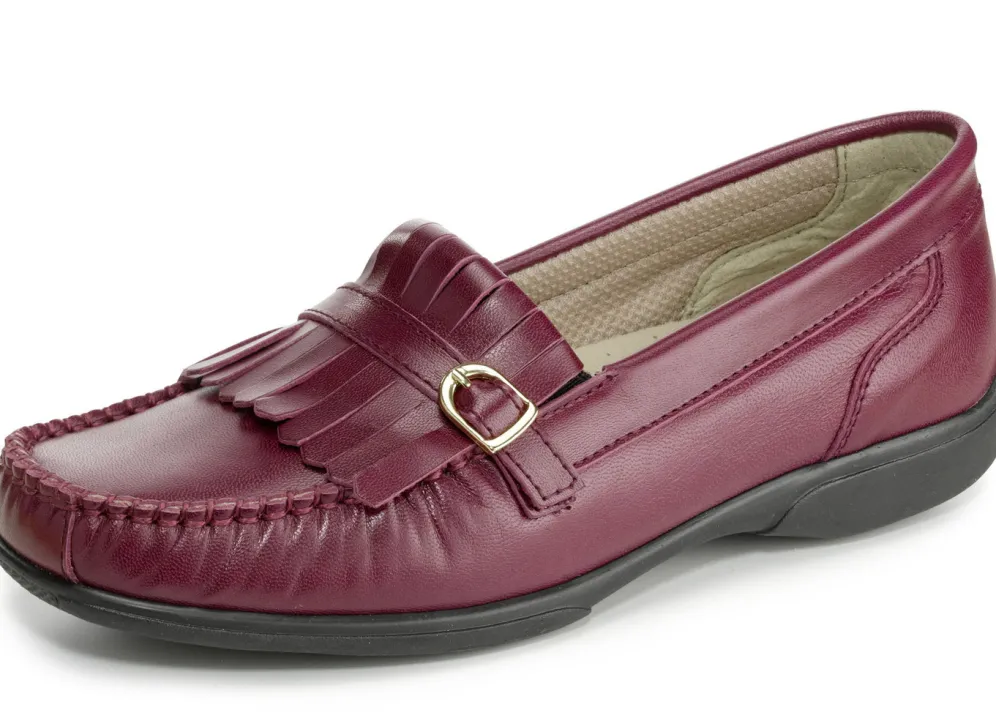 ELENA EDEN, klassische Damen-Slipper, Weite H, mit herausnehmbarem Lederfußbett in Bordeaux und in Größe 39.